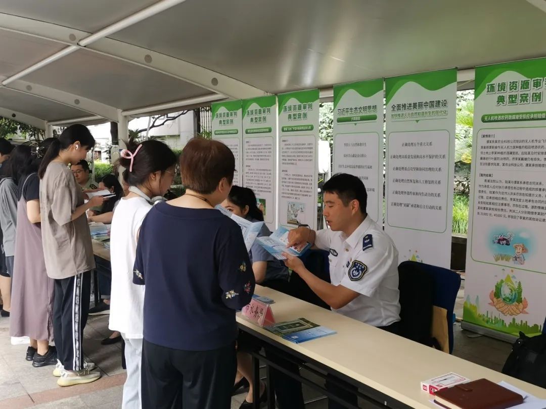 在“全国生态日”之际,与会人员前往附近园区开展“全国生态日”联合法治宣传活动,向市民发放宣传册、接受法律咨询等。同时也召开签约单位首次联席会议,就落实衔接机制的具体计划、当前环境资源领域法律适用的疑难问题等事宜开展会商研讨,并达成了一定共识。