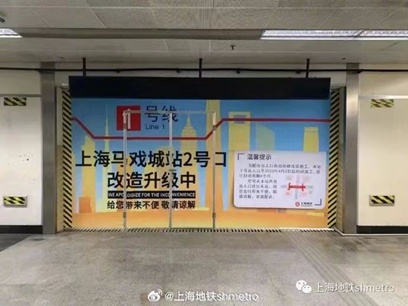 据了解,今年早些时候,“上海地铁shmetro”微信公众号发布了该站点出入口改造升级的通知,即从4月3日,地铁上海马戏城站2号出入口关闭并封闭施工,封闭周期约4个月。