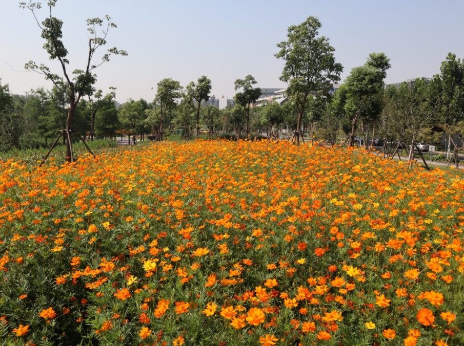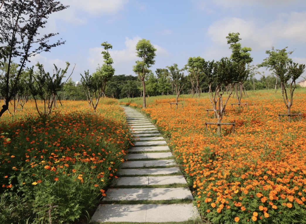 公园硫华菊花海成为了夏日限定拍照打卡点,东侧花海为了方便游客拍照和近距离赏花,播种时留出穿行便道,成片金色的花海吸引市民纷纷前来打卡留念,用照片记录下这炎炎夏日中一抹“野性的美”。