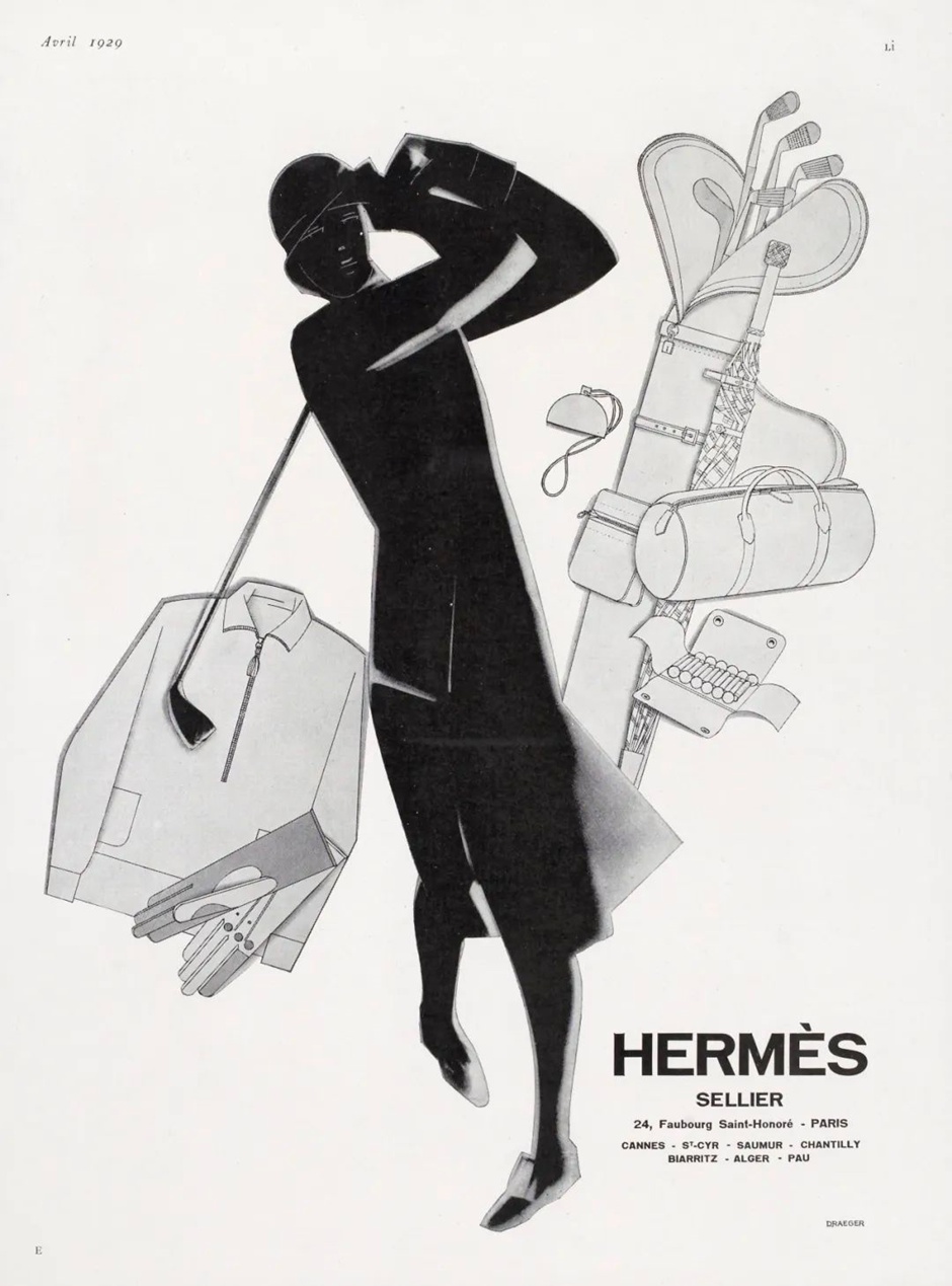 ▪ 《爱马仕高尔夫用品广告》,1929年。德雷格印刷厂,1929年,爱马仕档案馆。© 爱马仕 2023。