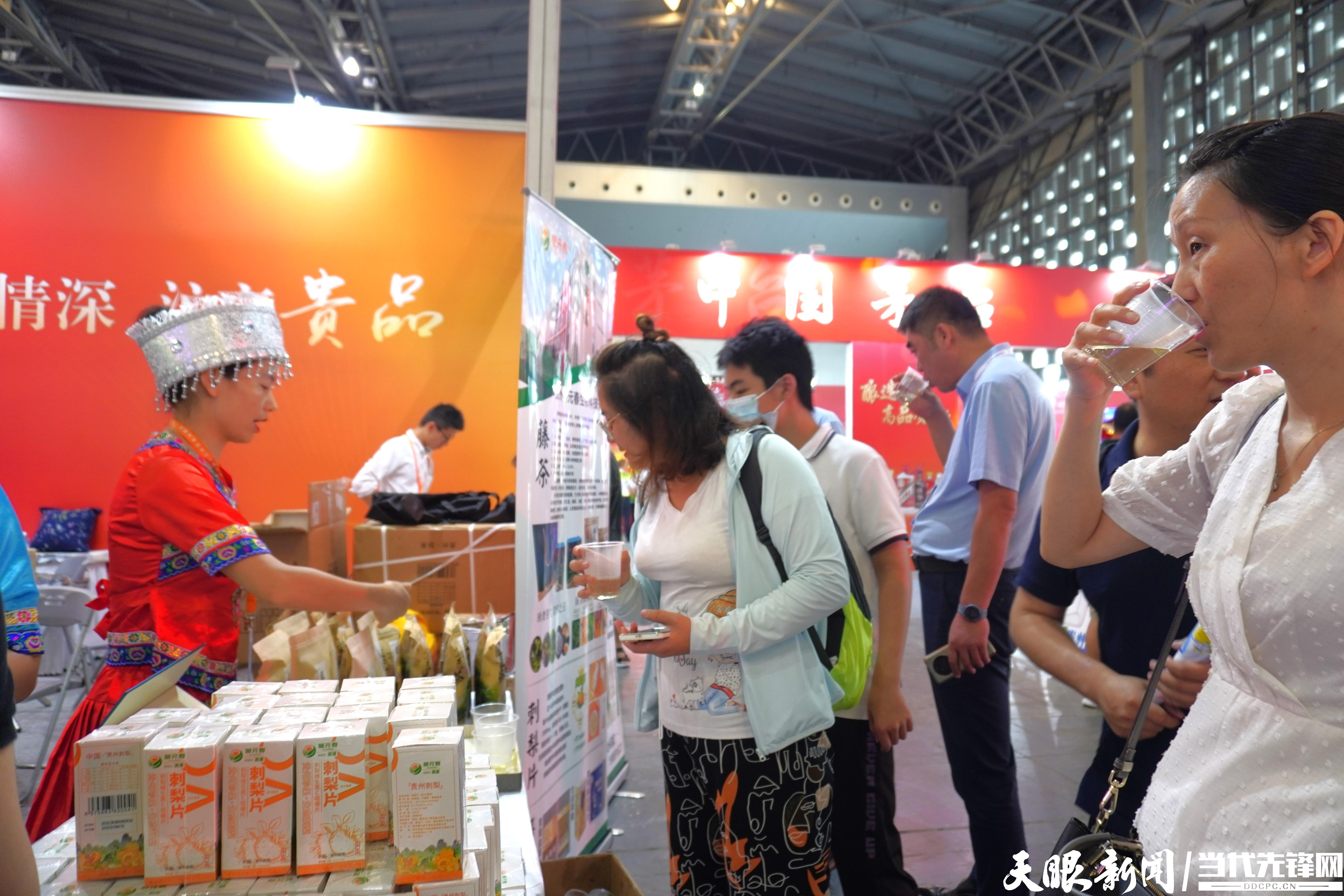 “快来喝一杯藤茶,尝尝口感。”8月14日至16日,在第23届上海国际食品和饮料展览会贵州主题展出口商品展区,贵州藤元春生物科技有限公司(以下简称藤元春公司)展销人员身着苗族服饰,一边忙碌冲泡藤茶,一边热情招呼观展者前来品鉴。