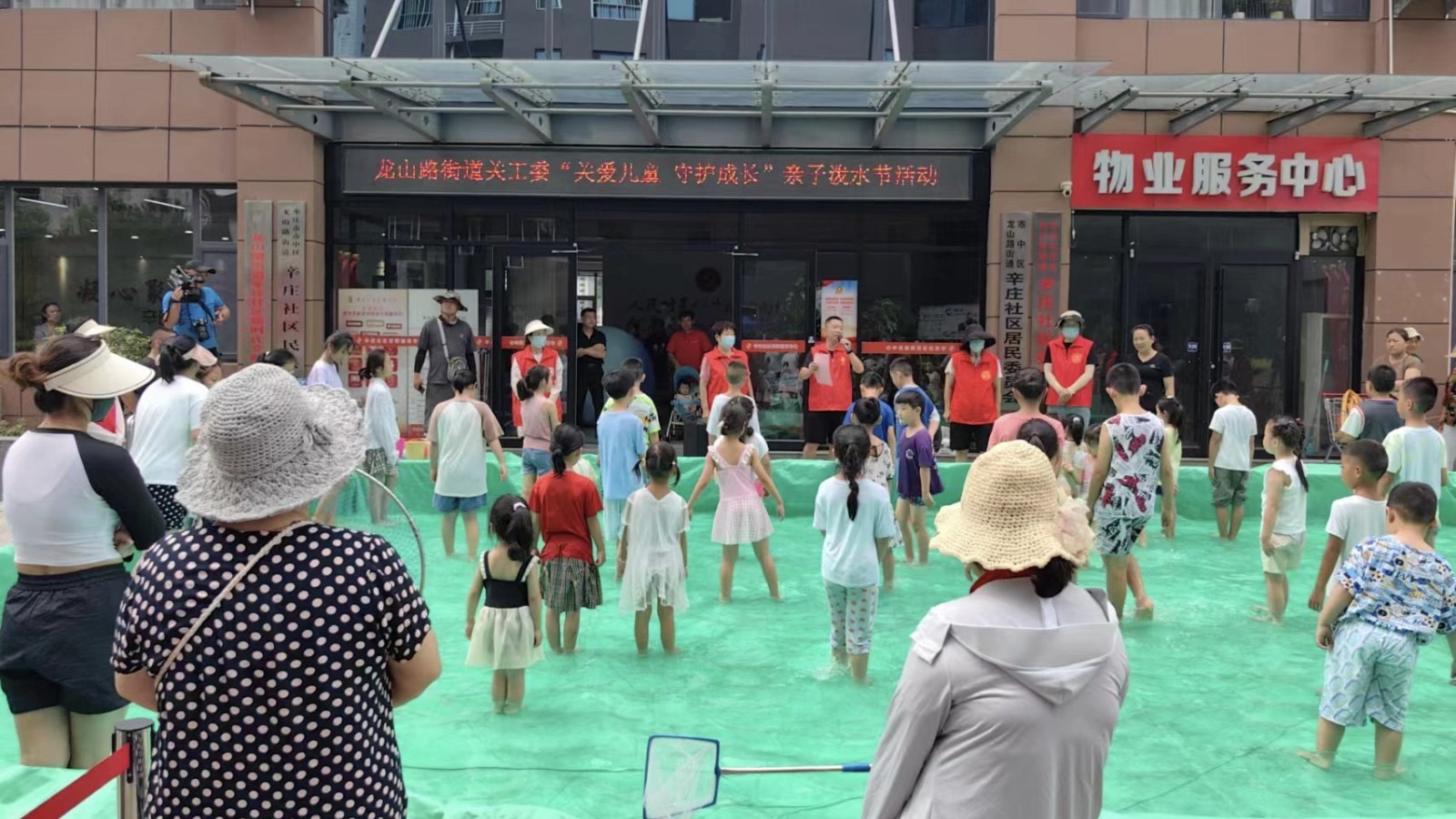 为丰富辖区青少年儿童暑期生活,让孩子和家长从游戏中得到快乐,通过寓教于乐的形式引导青少年儿童增强防溺水安全意识。8月15日下午,龙山路街道妇联、关工委联合辛庄社区共同举办“关爱儿童 守护成长”亲子泼水节活动。