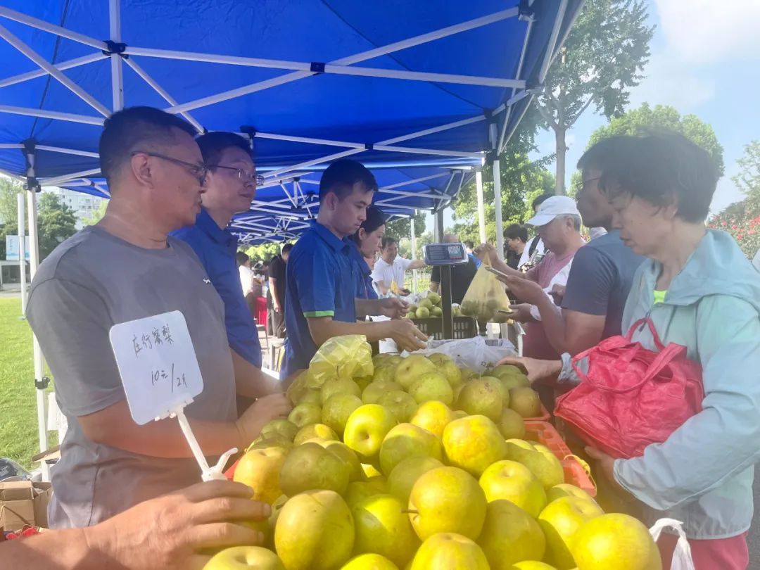 奉贤区供销合作社本着“为农、为民服务”的初心,搭建奉贤庄供蜜梨种植专业合作社,坚持助农销售蜜梨13年。此次借助“安心供销市集”平台,把当地庄行蜜梨和奉贤黄桃作为主要产品进行展示展销,让奉贤农产品“走出”奉贤,进一步展现绿色产品新品质,大大提升了知名度和美誉度。现场售卖水果的按照6两上下两种规格标价,并在原售价基础上8折进行销售。