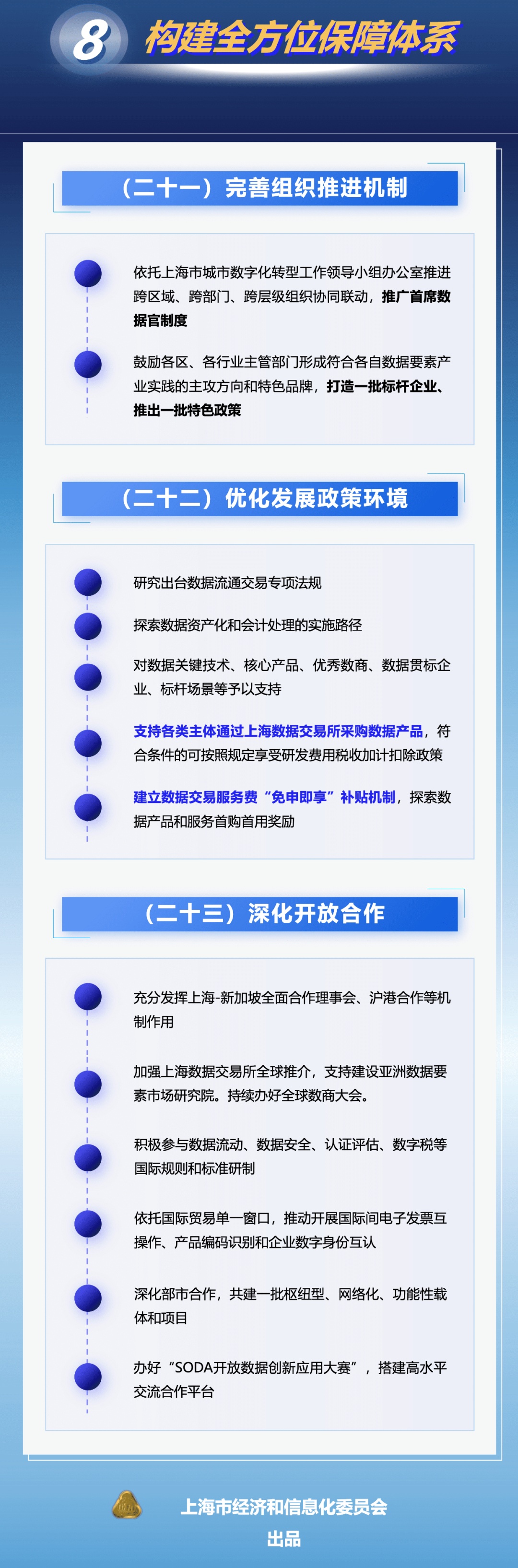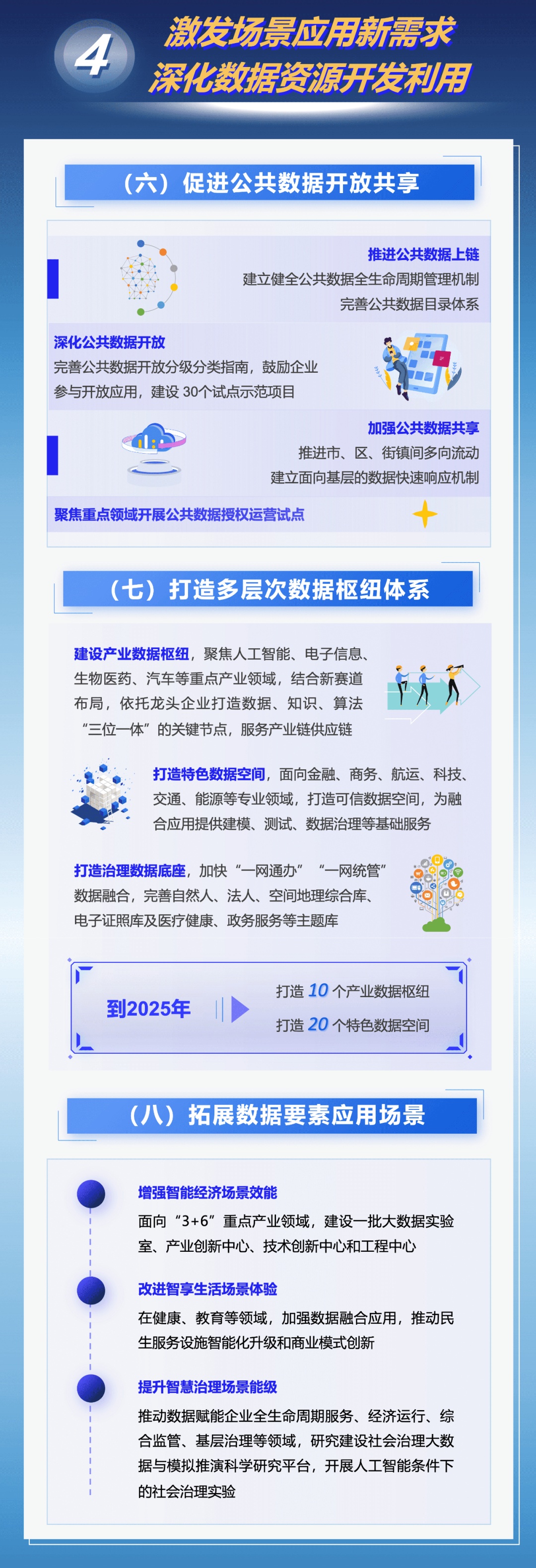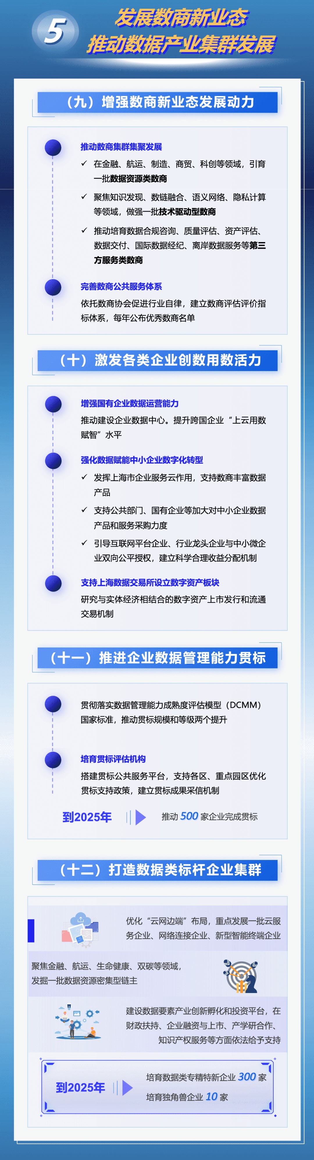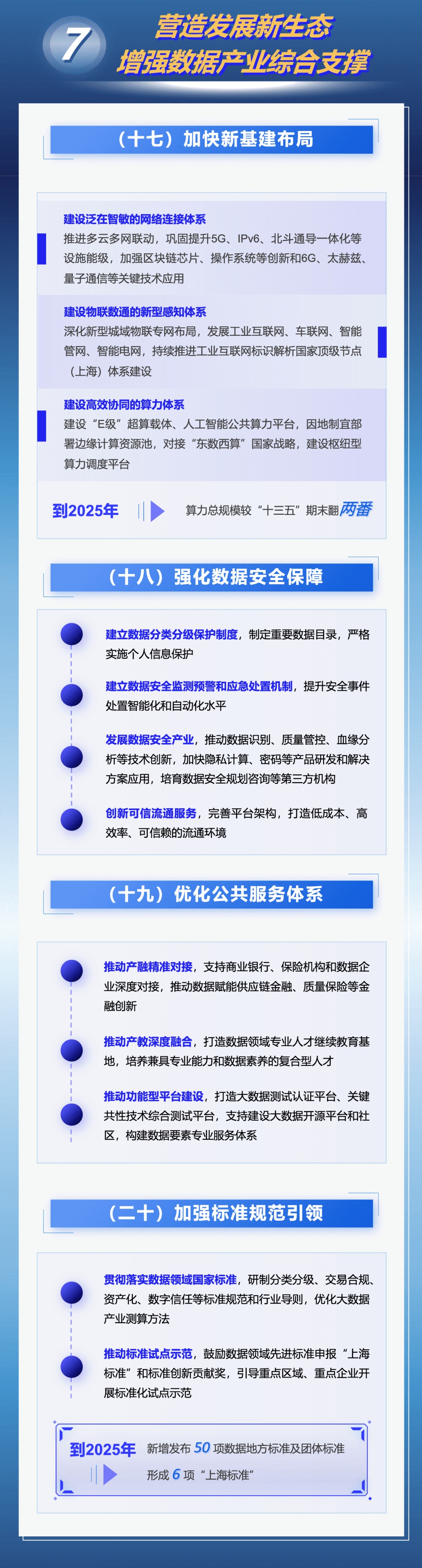 为着力建设具有国际影响力的数据要素配置枢纽节点和数据要素产业创新高地,本市出台《立足数字经济新赛道推动数据要素产业创新发展行动方案(2023-2025年)》,在加强数据产品新供给、激发场景应用新需求、发展数商新业态等七方面采取措施,力求到2025年数据要素市场体系基本建成,国家级数据交易所地位基本确立,数据产业规模达5000亿元。来看图解↓