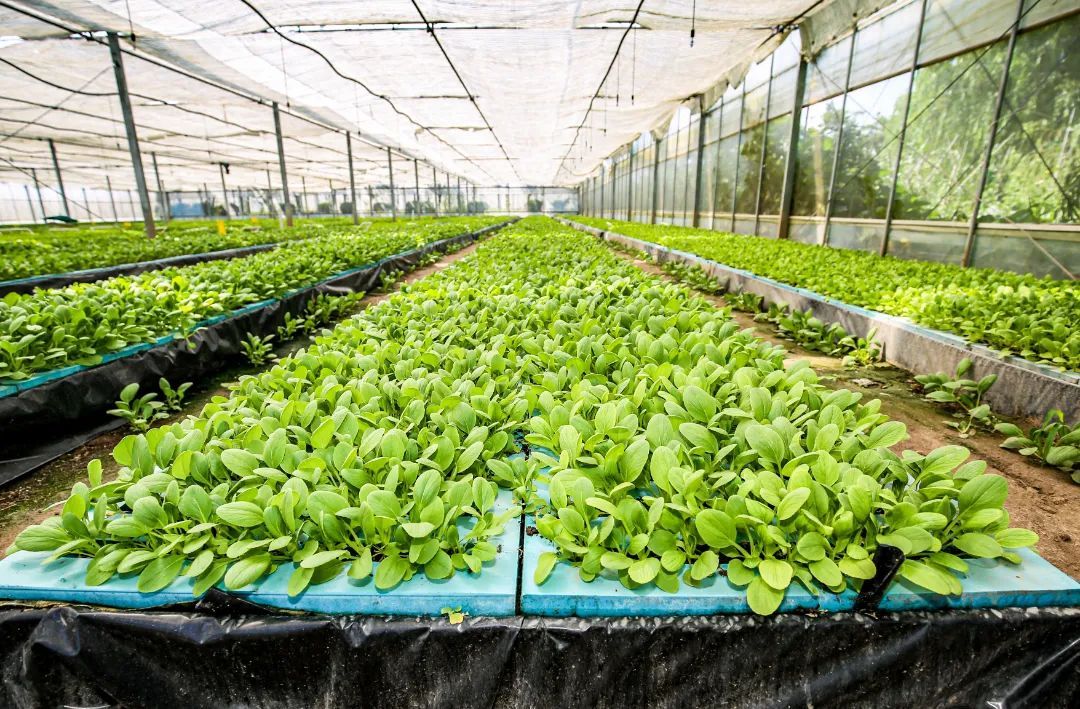 据了解,目前基地内共有无土栽培蔬菜大棚12个,每个大棚的可种植面积为2亩,种植的绿叶菜主要有鸡毛菜、芹菜、杭白菜等,不同种类蔬菜年产量可达2200斤到4500斤不等。另有8个大棚在建,预计今年9月底可以投产。