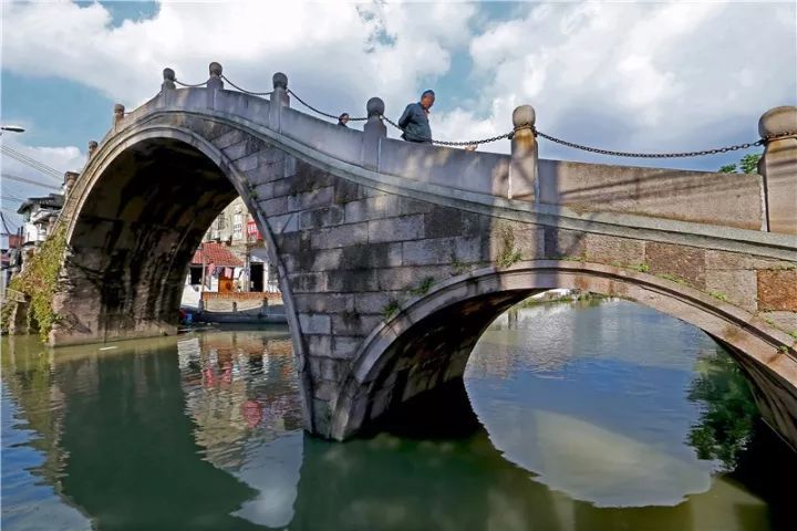 福连桥也被称为“中市桥”,始建于明代万历年间(1573-1620年),为松江区文物保护点。根据史料记载,福连桥为三孔石拱桥,大拱呈半圆形,两旁各有一个小拱,原本呈折线形状的桥身,俯瞰下,桥面中间窄两侧宽呈八字形。历经岁月风雨,桥北头受损,桥身也受到了不同程度的损害。1986年,福连桥重建。然而,重建后的福连桥却一改最初的模样,桥身变成马鞍形,桥面宽度相近,成了一字形。