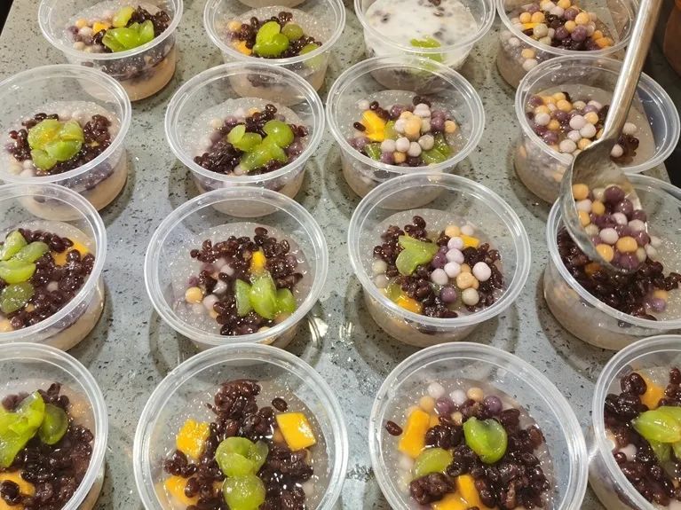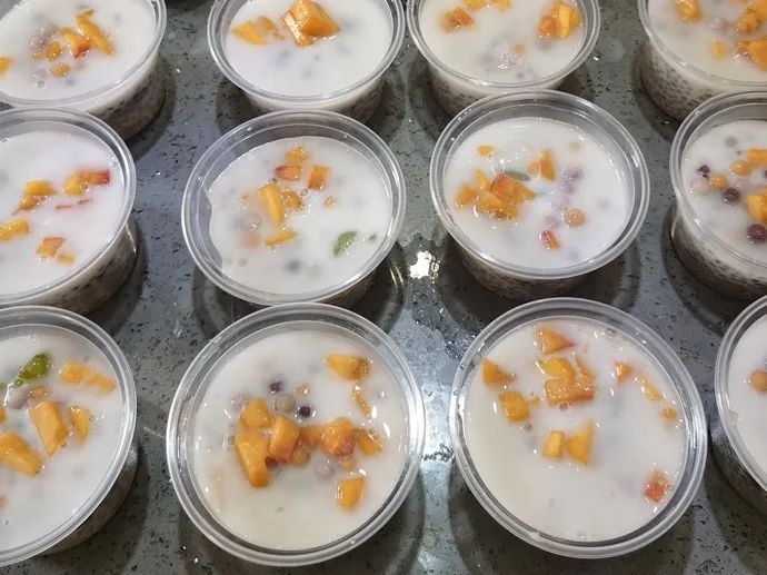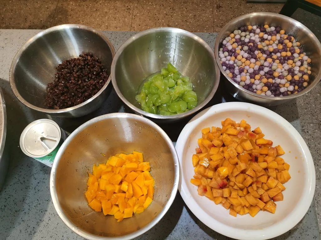 椰浆、芋圆、蜜豆、葡萄、芒果、黄桃等