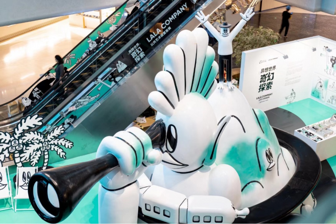 徐汇滨江的AI PLAZA西岸凤巢携手LALA COMPANY举办的“异想世界 · 奇幻探索”公共艺术装置首展,以LALA COMPANY插画形象为主角,通过前所未有的3D立体大型装置的呈现,为大众展示线条世界的纯粹和生活的留白,共赴一场奇幻探索之旅。