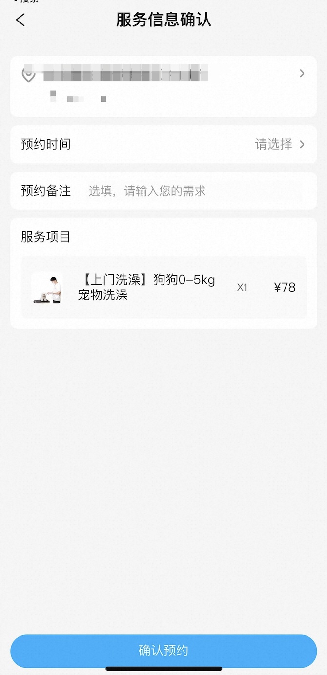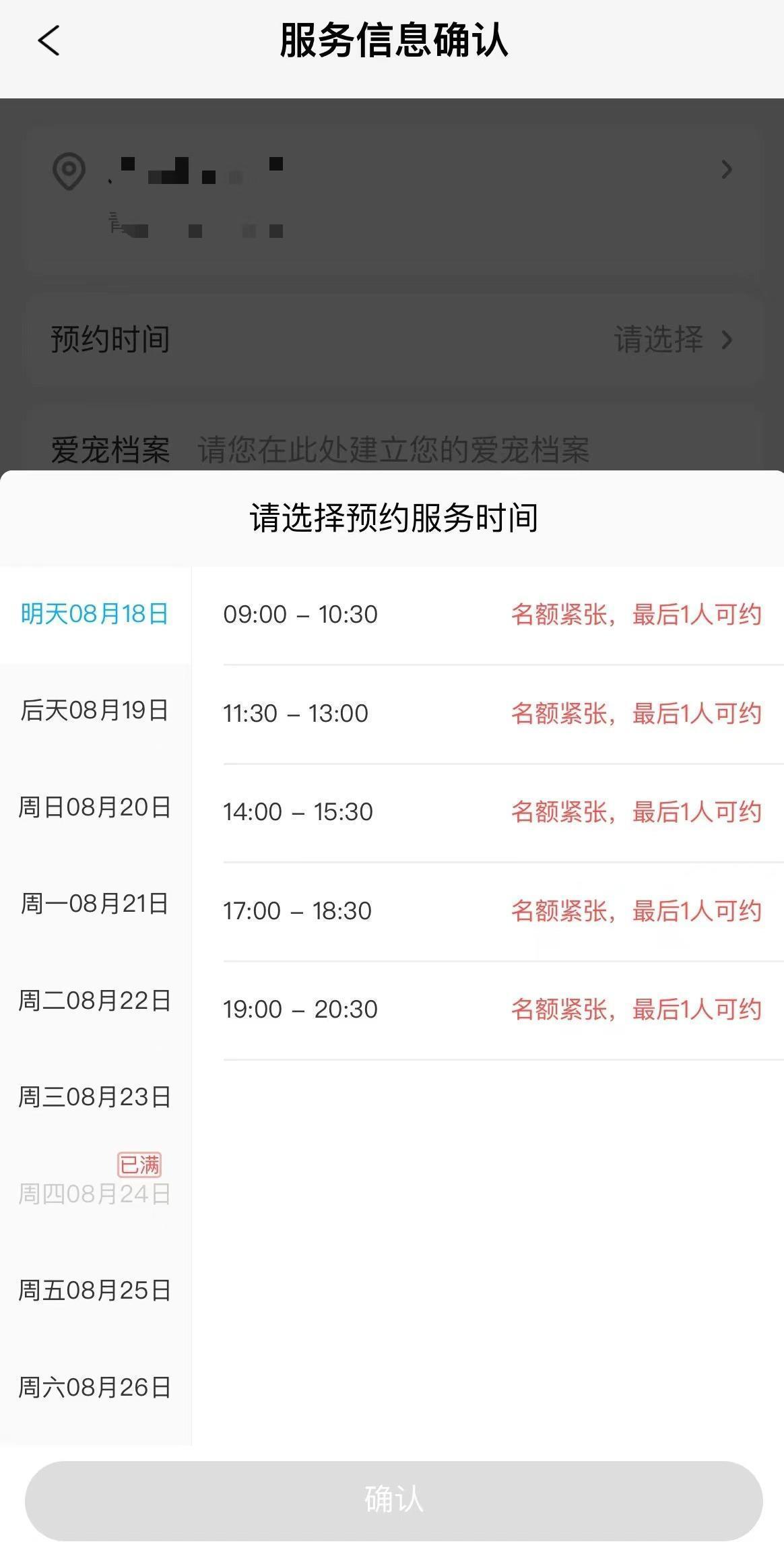 用户可在下单页面预约宠物护理师、美容师上门时间段