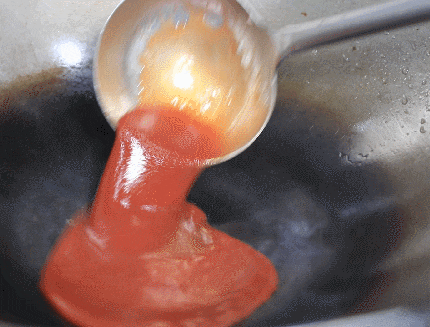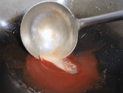 3.锅中倒油,加入番茄沙司、白醋、白糖。