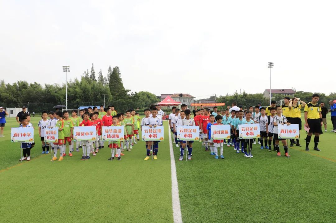 8月17日上午,“跨域山海”第六届小红鹰足球夏令营暨第二届“井亭杯”青少年足球赛邀请赛在新河镇举行,来自云南省临沧市云县、上海市崇明区的足球小将们在绿茵场上同台竞技,一展少年风姿。足球比赛正式开始前,主办方举行了简短的开幕仪式。来自云县和崇明本土共计近百名小球员进行了初步的接触交流。