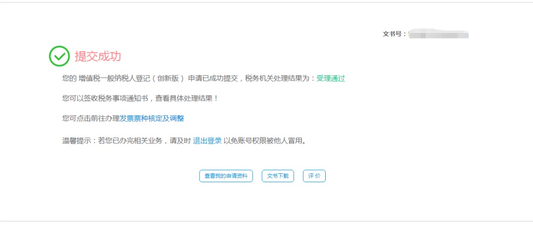 点击【文书下载】可查询打印《增值税一般纳税人登记表》。