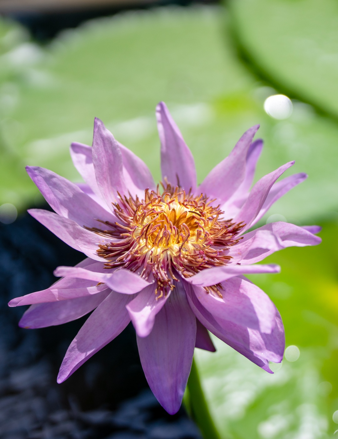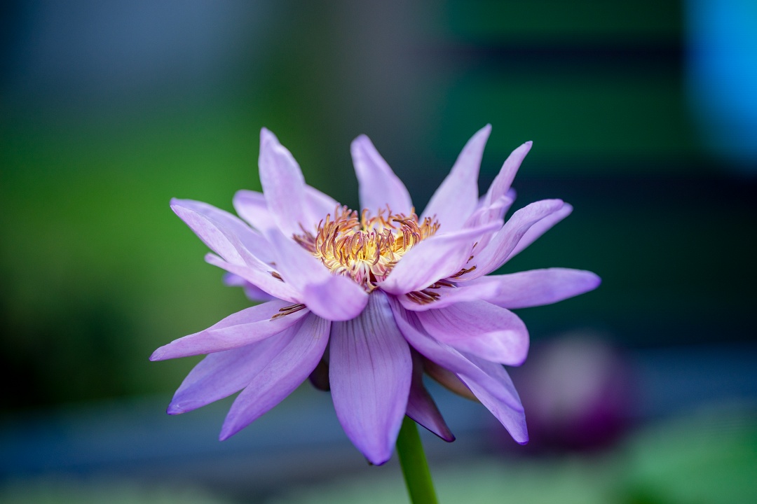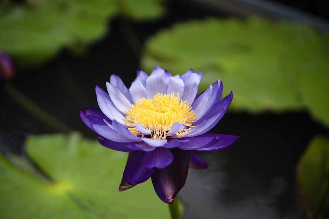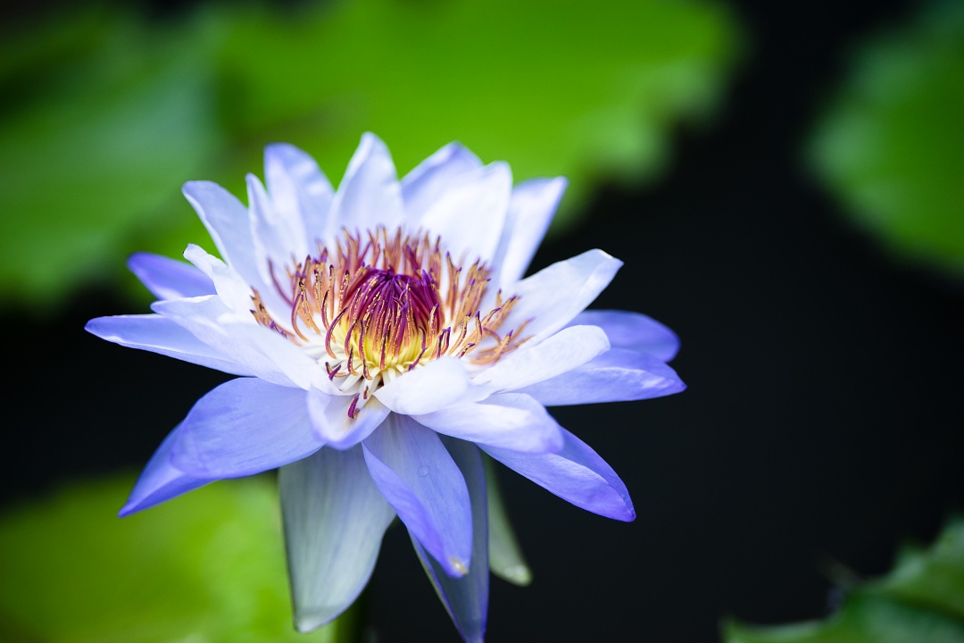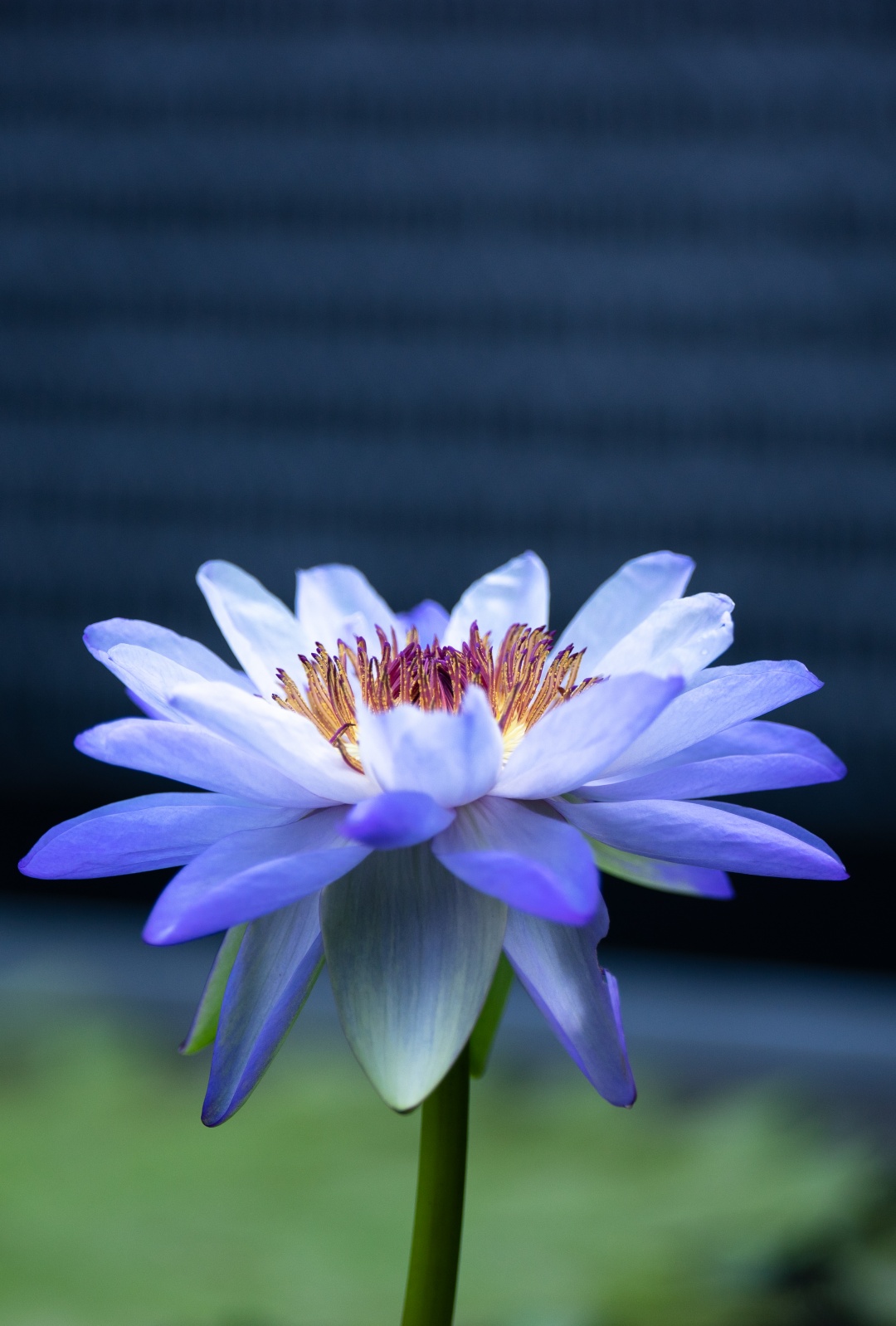 [蓝蝴蝶]睡莲也是以澳洲睡莲和其他亚属睡莲杂交培育成的跨亚属品种,[蓝蝴蝶]睡莲拥有着蓝色深红的花蕊和淡蓝色的花瓣,小巧可爱,池栽易群开,抗性强。