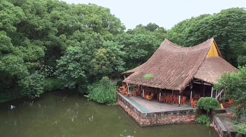 古色古香的“丝竹镇”依傍“镜竹塘”,小溪、竹丛与建筑的完美组合,绘就了一幅清幽的绝美画面。