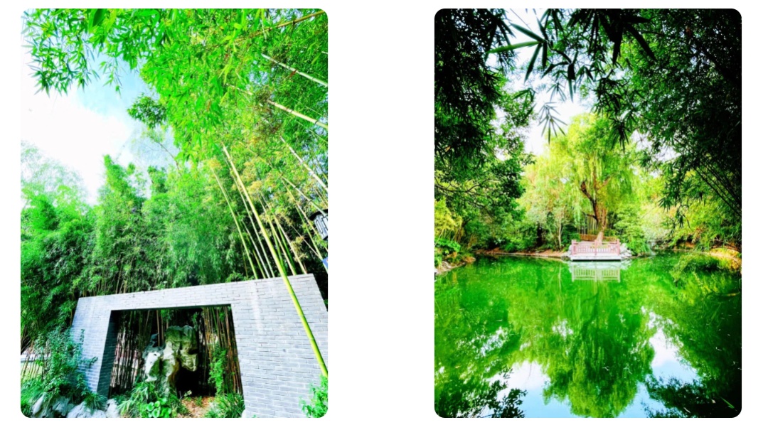 公园采用传统院落与现代园林相结合的布局,运用小中见大的造园手法展现意境。