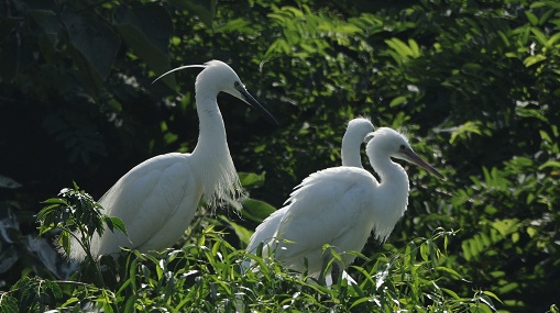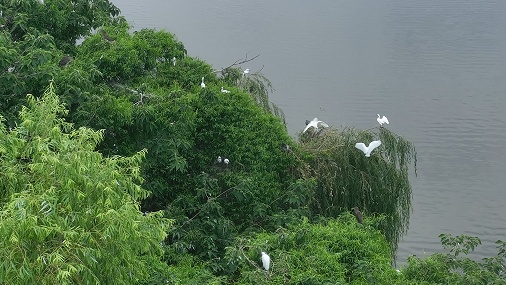 夏末秋初,在枣庄市中区东湖公园,在湖中小岛上,成千上百只白鹭在此栖息繁衍,一个个白鹭小家庭其乐融融。