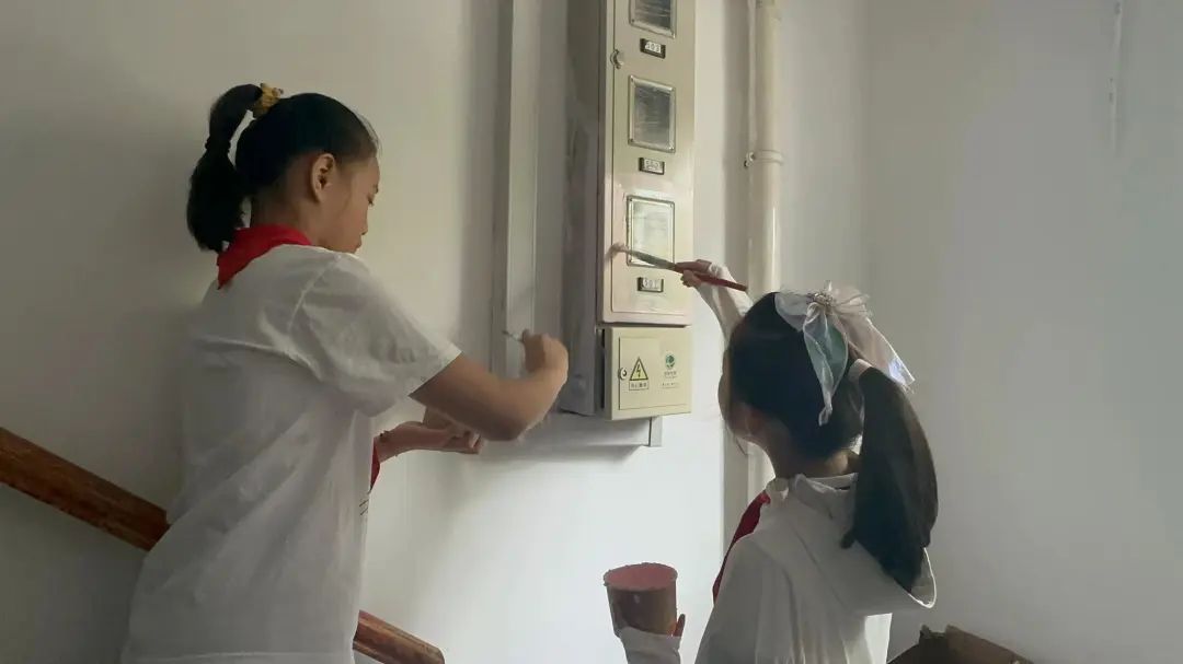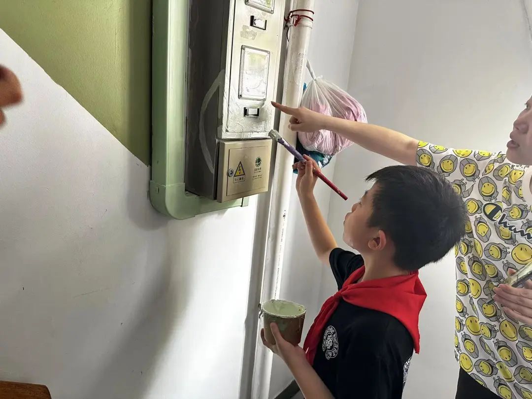 谈起此次楼道彩绘,不得不提的便是多方力量的参与。西姚居民区党总支坚持党建引领,在楼道美化过程中协调多方力量进行墙面粉刷,将可能发生的矛盾提前化解。而将两个楼道的主题确定为航天科普主题和茶艺主题,最初来源于西姚居民区的共建单位:回民小学和董家渡路第二小学,两个学校的特色分别是科普和茶艺,此次楼道主题的选定正是结合了两所小学的特色。在8月17日,两所小学的学生们也加入到楼道彩绘的队伍中,共普“零距离”的美妙乐章。