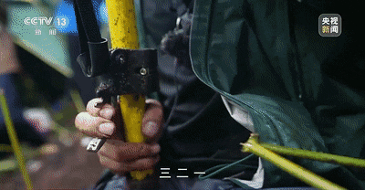 爬树的第一步是把攀爬用的绳子挂到树枝上。攀树师们利用专业弹弓机,将豆袋绳投射到合适的枝丫,再把攀树绳引到所挂的位置。