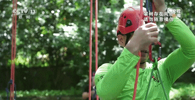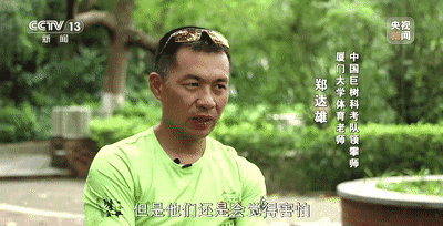 厦门大学体育老师郑达雄是大陆首位获得国际树木学会ISA认证的职业攀树师。作为领攀人,他要把绳子带到树顶,为后续上树采集标本和布设红外相机的科研人员探路。