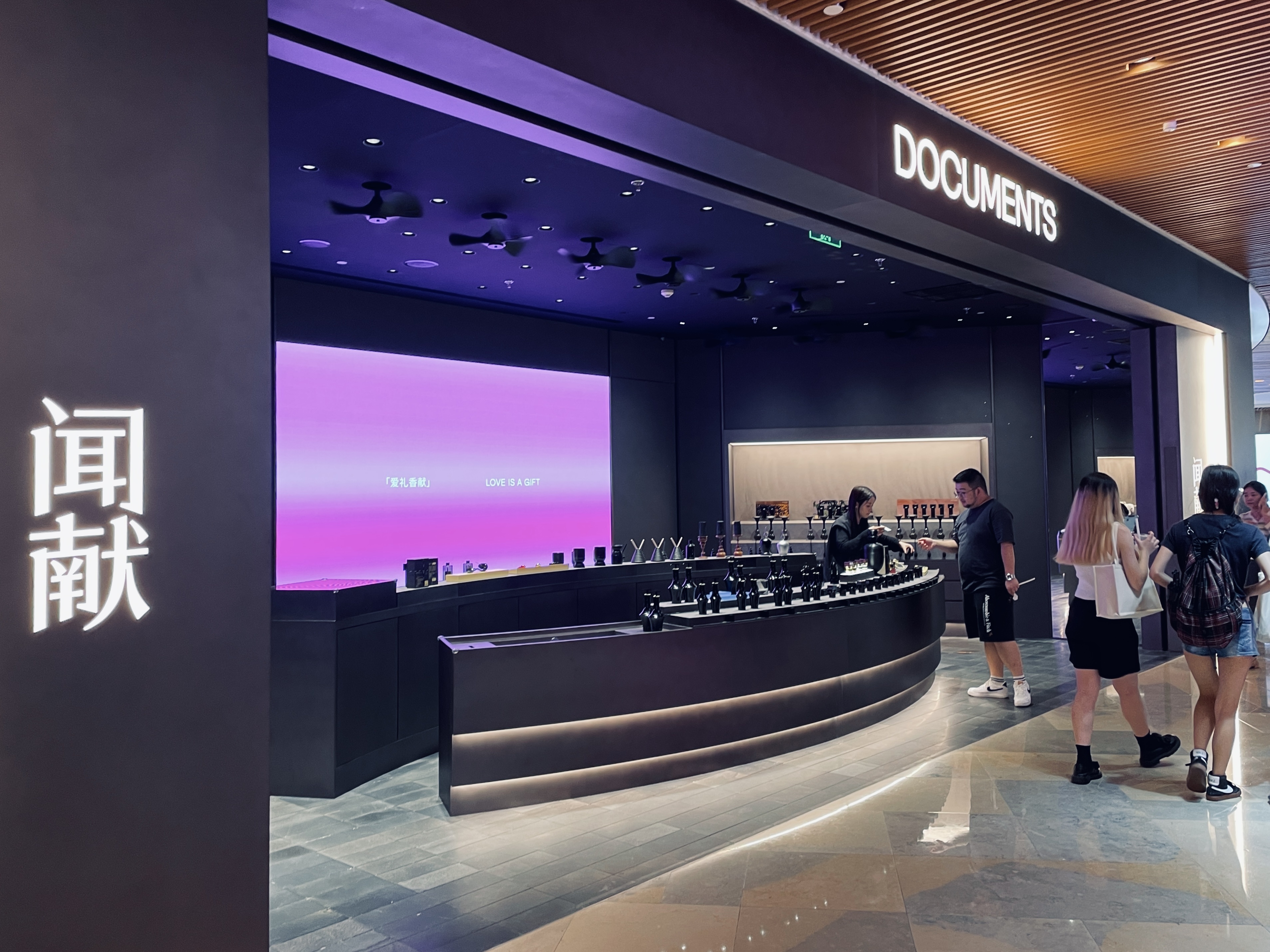 中国本土高端香氛品牌DOCUMENTS闻献、东方沙龙香水品牌melt season岩语、德国芳香精油品牌15 ESSENTIALS、泰国植物香氛护肤品牌THANN、国内原创宇宙美学香氛品牌Cosmic Speculation宇宙的猜想(围挡中)……多家国内外香氛品牌在商场北区B1汇聚一堂,同台竞技。