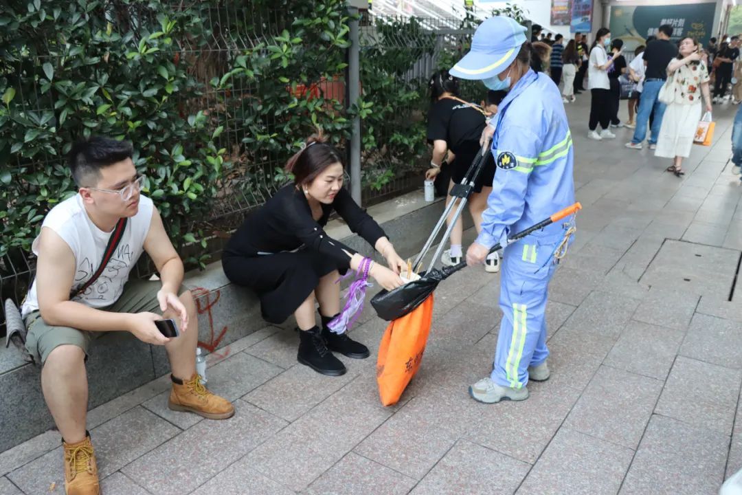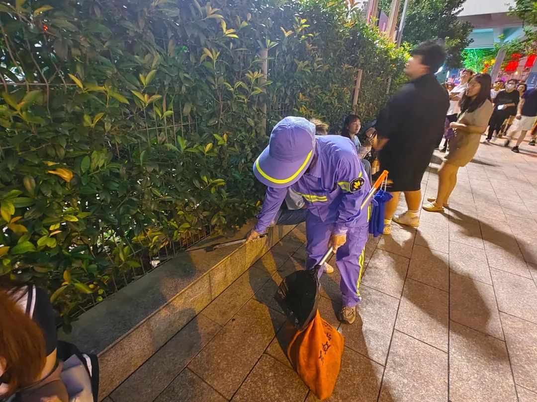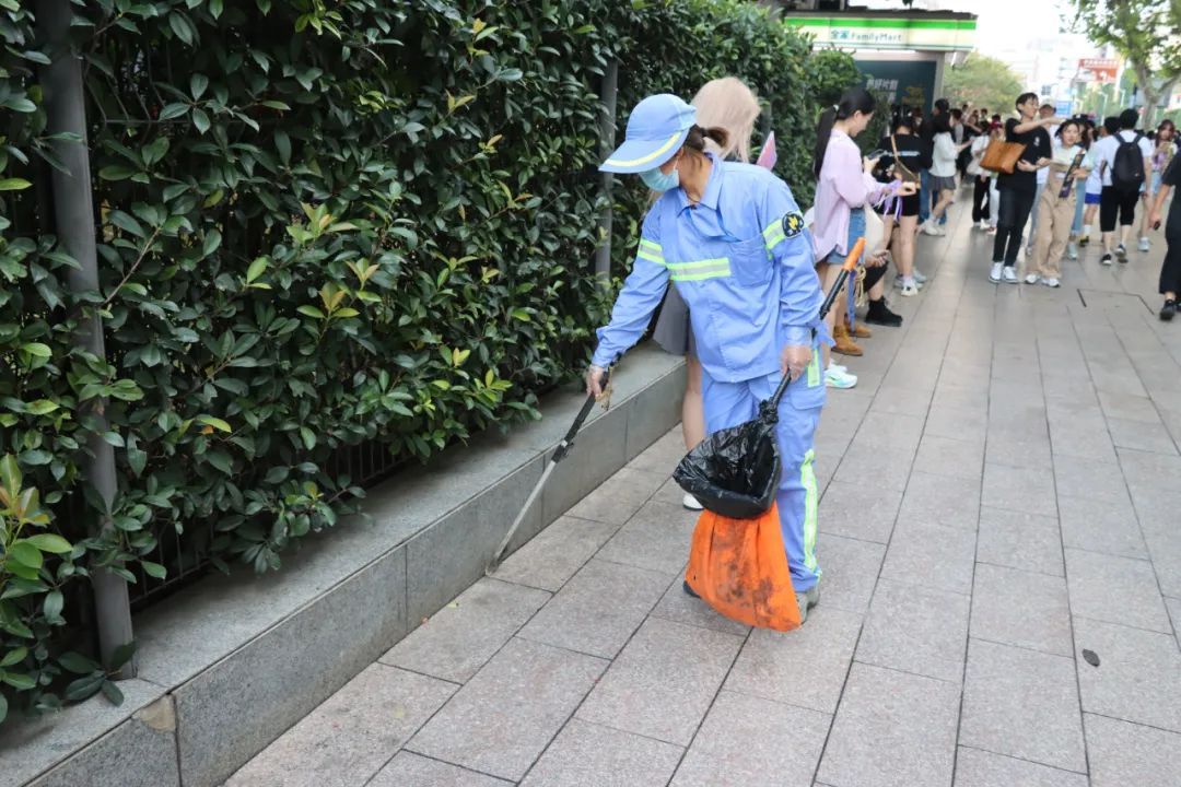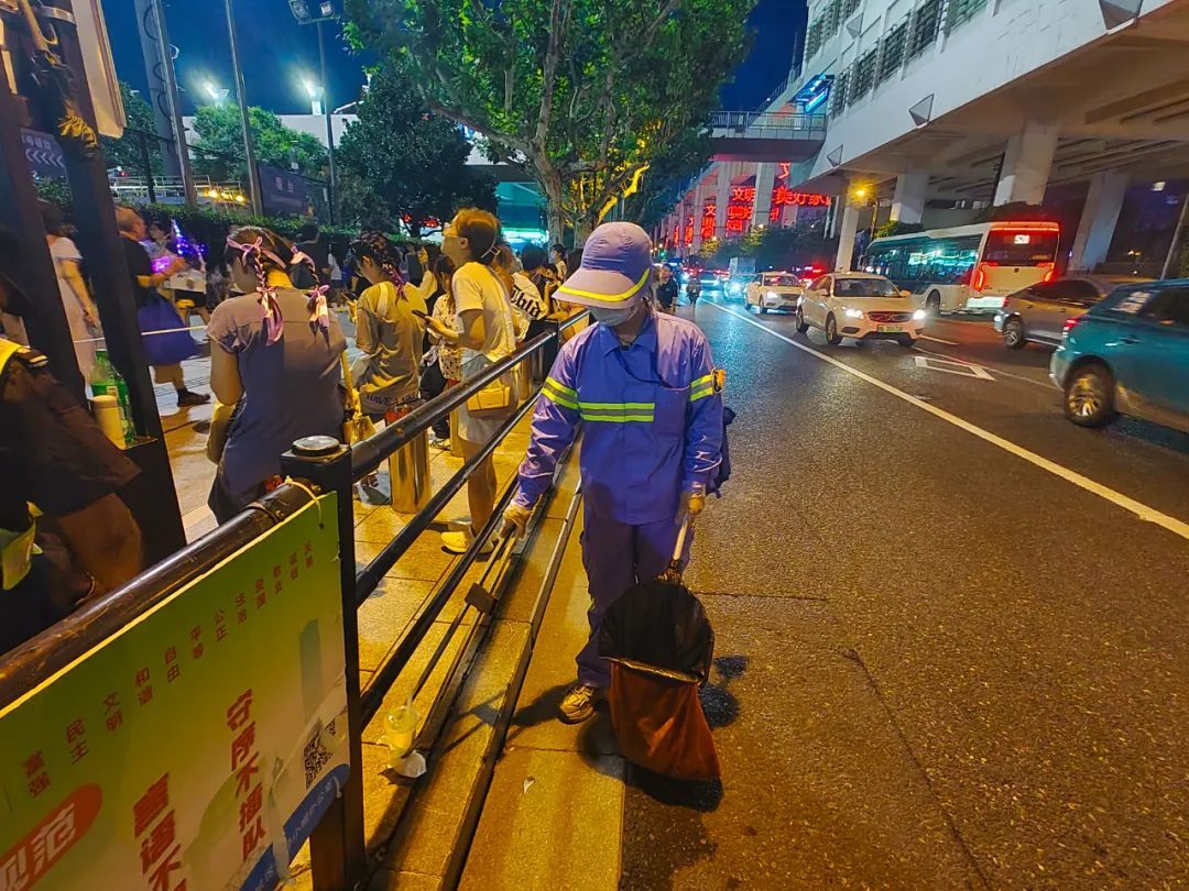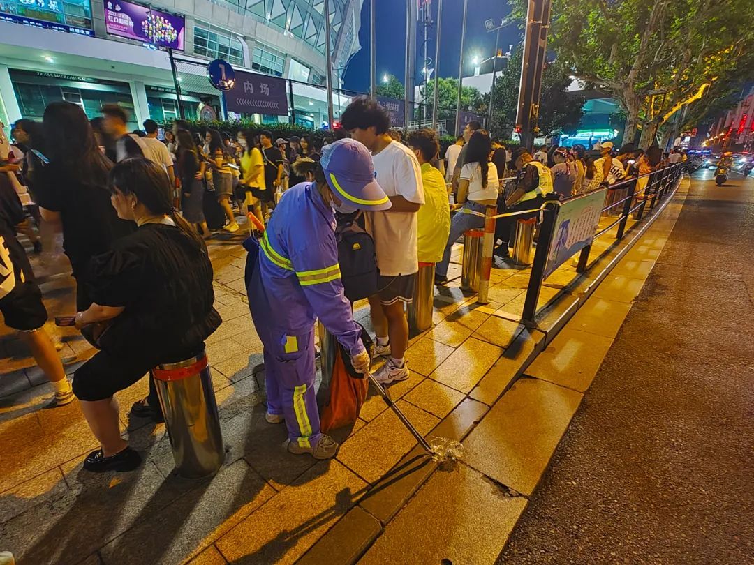 8月中下旬的夜晚虽然已没有盛夏时期的闷热,但穿着工作服走在路上,豆大的汗水仍然不停地从陈娟的额头上流下来,她却笑着说:“一切付出都是值得的,希望歌迷们在享受完音乐盛宴后,等待大家的是干净整洁的环境。”