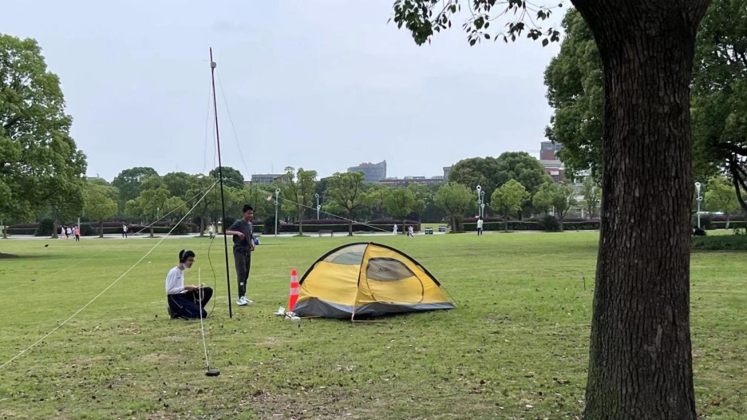 虞钟逸(右)与汤嘉铭(左)进行应急通讯搭建