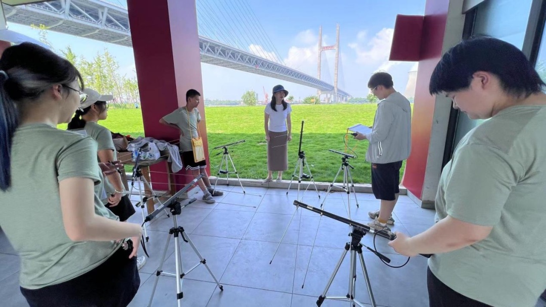 唐淼淼(左二)与队员们进行无线电通讯训练
