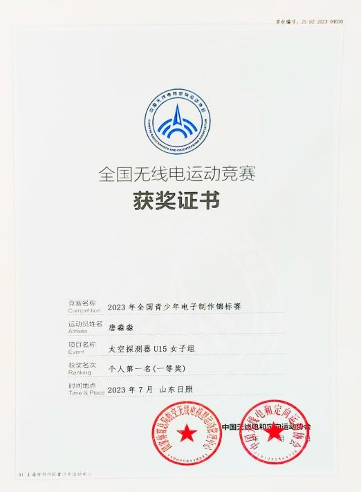太空探测器U15女子组个人第一名(一等奖)获得者唐淼淼在赛后表示,通过参加电子制作的比赛,提高了自己的动手能力,同时也能激发自己的创造力和解决问题的分析能力、思考能力。