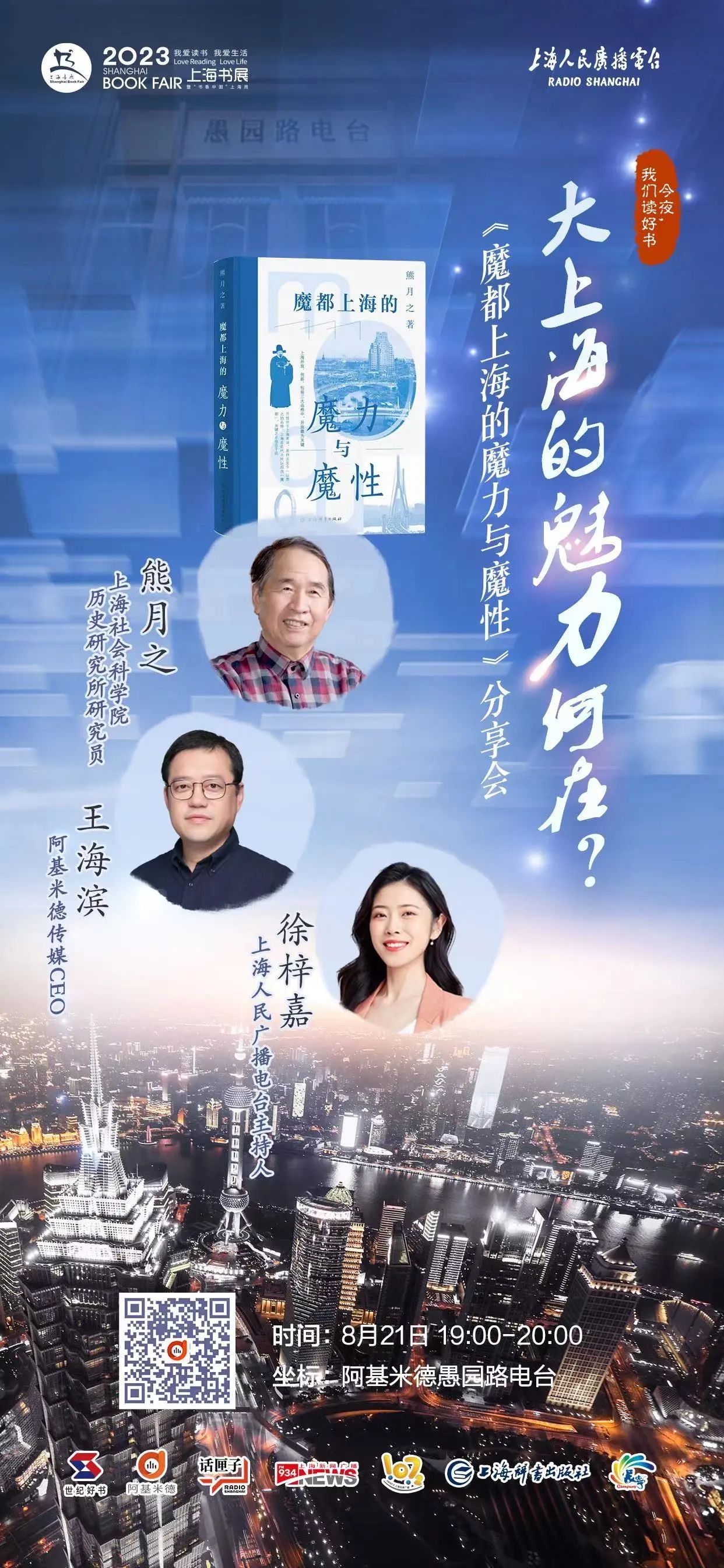 今天(8月21日)晚上19:00—20:00,“上海长宁”APP与阿基米德、话匣子、上海故事广播、上海辞书出版社官方抖音号将共同直播“今夜,我们读好书”愚园路电台读书分享活动。今晚将对话的是上海社会科学院历史研究所研究员熊月之,围绕其所著书籍《魔都上海的魔力与魔性》,分析上海的魔都内涵,讲述上海开放、创新、包容的城市精神。