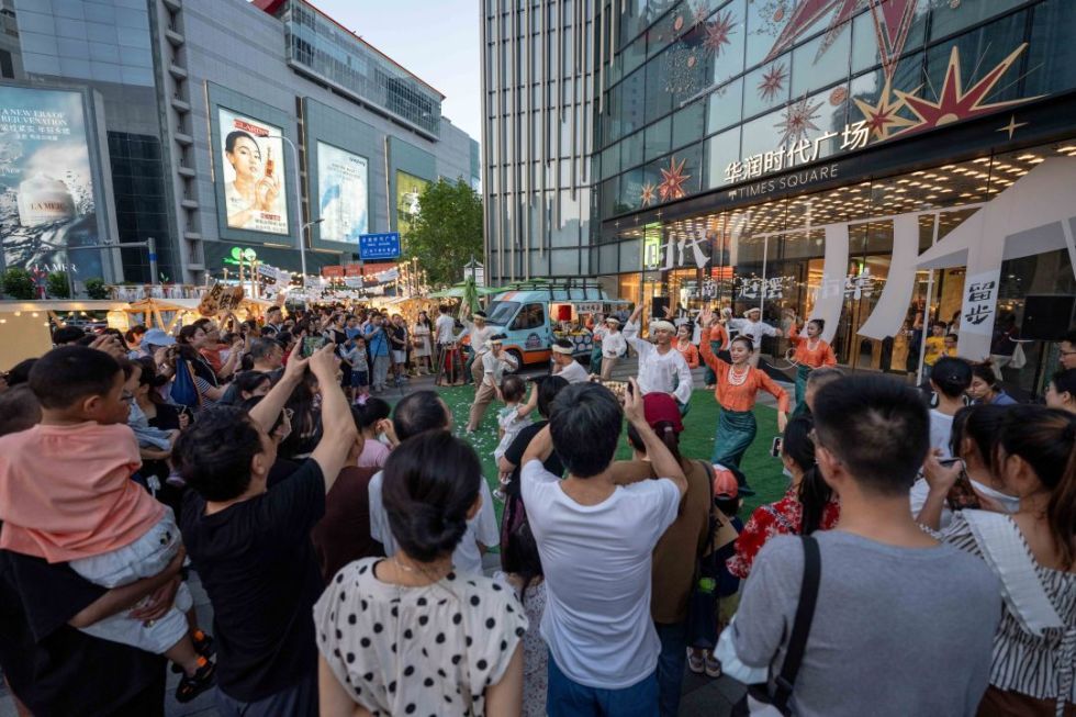 绚丽灯串竞相点亮,泼水舞曲欢快响起,华润时代广场近1000平方米的户外空间,在近日变身为期10天的“云南赶摆市集”,吸引众多市民游客驻足。