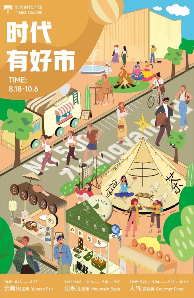 据了解,以“时代有好‘市’”为主题,华润时代广场将开展为期40天的城市趣野市集,首期“云南赶摆市集”(8月18日至8月27日)后,山系生活市集(9月8日至9月10日、9月15日至9月17日)、人气美食市集(9月22日至9月24日、9月26日至10月6日)将接棒亮相,带来消费新体验。