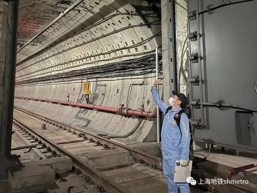 隧道中虽不如地面那般灼人,但在水汽的作用下更显闷热。维保工务青年手持设备,巡查隧道病害,及时发现安全隐患,守护轨道交通基础设施安全可靠。