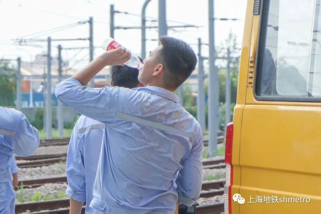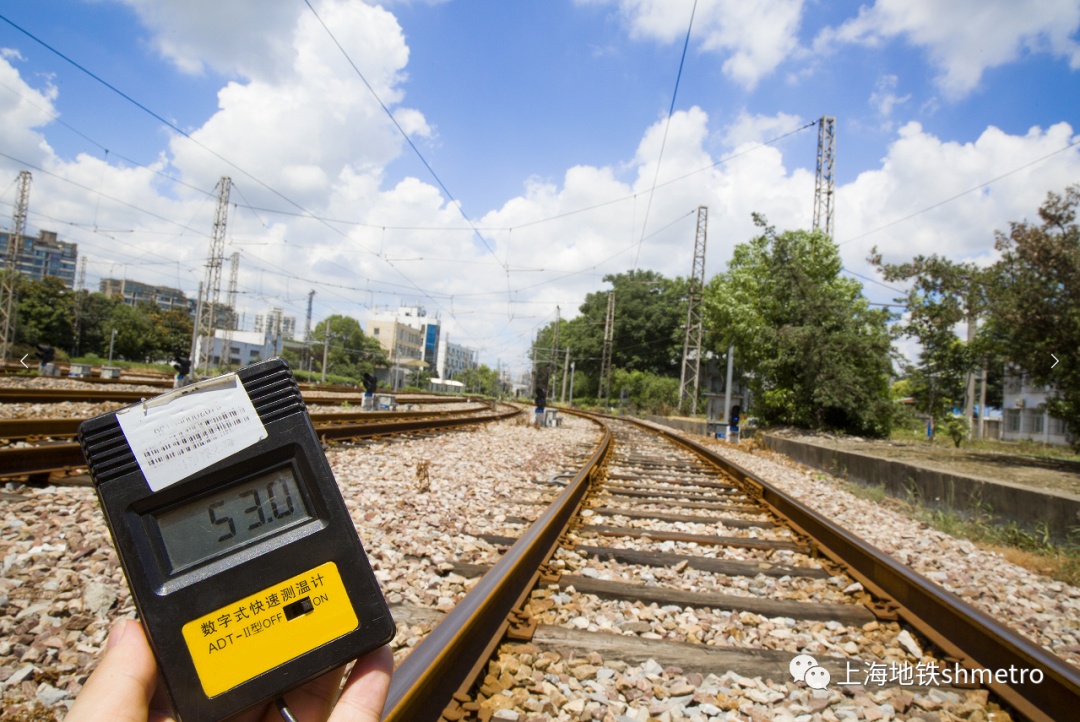 50°C的轨温下,上海地铁维保工务青年们面对阳光直晒,依旧坚守一线,一丝不苟地进行高温巡检,确认高温下轨道设备状态,确保地铁列车能够安全驶过。