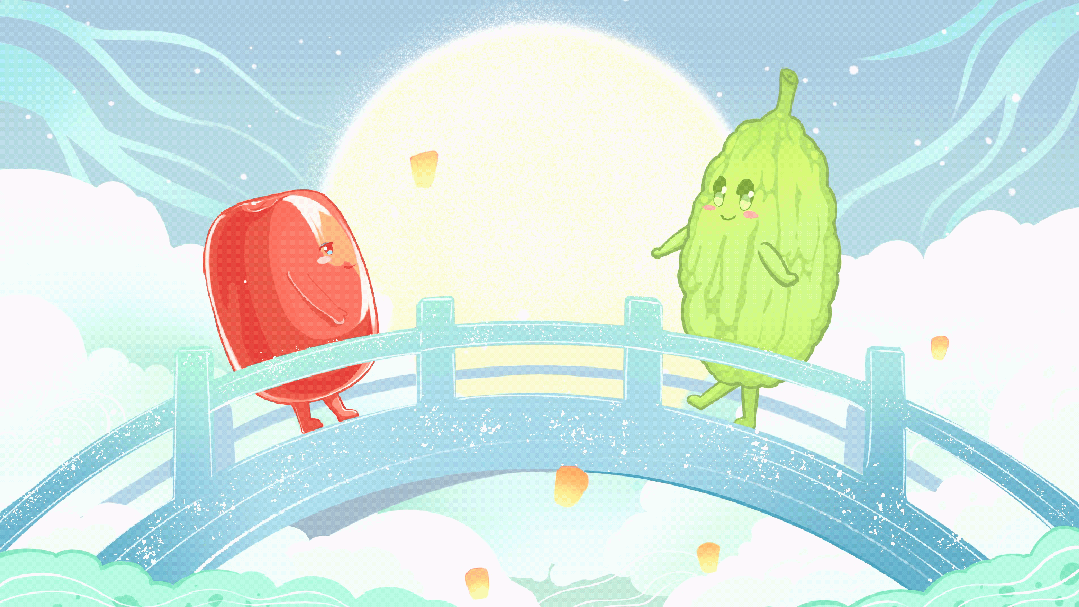 康康和小小为爱突破物种壁垒,搭起食物界的鹊桥,让种在土里的、长在树上的、游在水里的、跑在地上的……都可以谈起甜甜的恋爱,每一天都可以是七夕。
