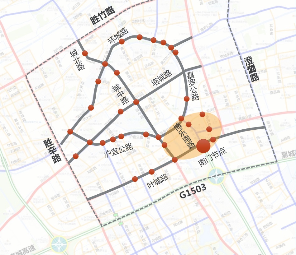 自2021年起,嘉定区针对城区道路拥堵节点,全面启动老城区道路交通拥堵改善工作,重点围绕嘉定新城主城区的S5嘉定城区出入口、南门片区、城中路城北路、沪宜公路、环城路、嘉罗公路、塔城路的“一点一片五线” 共30个道路拥堵节点,采取79项缓拥堵“微改造”措施。