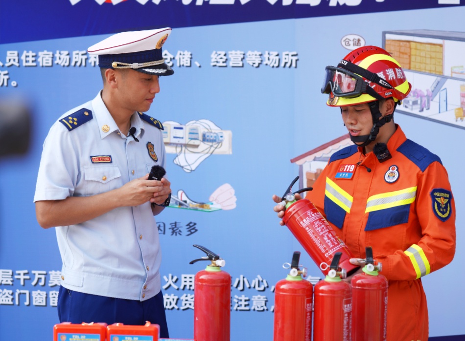 直播最后,消防人员为大家介绍了常用的灭火器、逃生面罩等消防器材,并再次提示“三合一”场所的火灾风险和火灾防范要点。同时,还提醒场所经营者要树立消防安全意识、规则意识,对于相关法律法规要清楚了解并严格遵守。