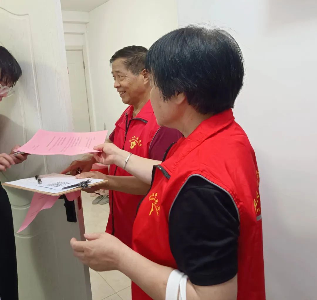 “阿姨,电瓶车不要停到楼道里,外面有专门的电瓶车停放点,谢谢配合。”“管家团”成员在楼道口劝阻着想要推车进来的居民。