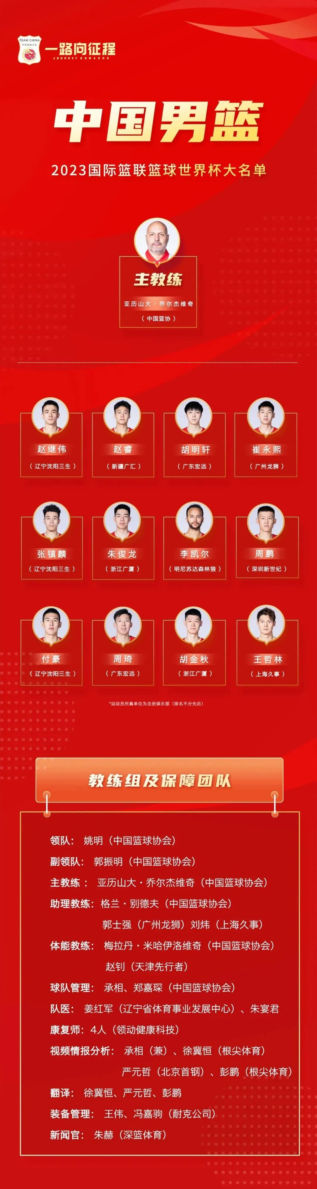 主教练:亚历山大·乔尔杰维奇(中国篮球协会)
