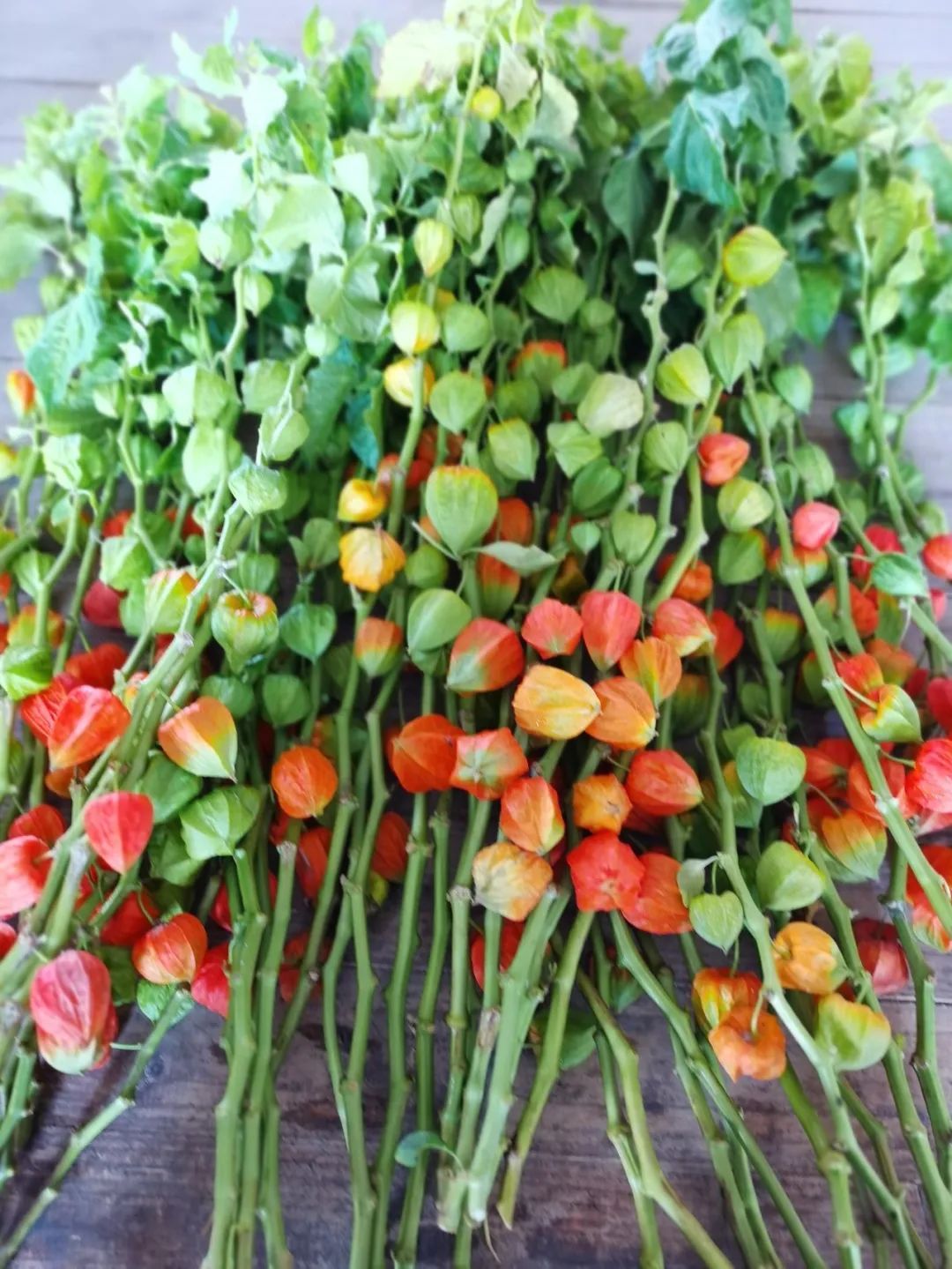 酸浆果,又名菇娘儿,是我国东北地区的一种常见水果,在水果市场上经常能够看见它的身影,但你见过瓶插的观赏类酸浆果吗?在崇明的丽辉农场鲜切花基地就培育出了这样一种酸浆果,作为这几年较为流行的小众花材,深受市民的喜爱。