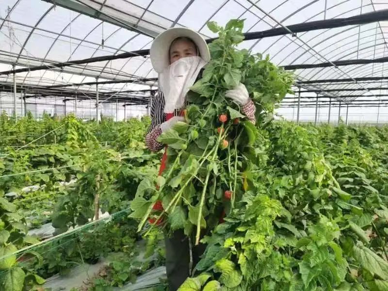 走进丽辉农场的种植大棚,一颗颗红色的酸浆果星星点点如灯笼般挂在枝头,在一片翠绿中显得格外热烈,花农们在田间穿梭,忙着采收。