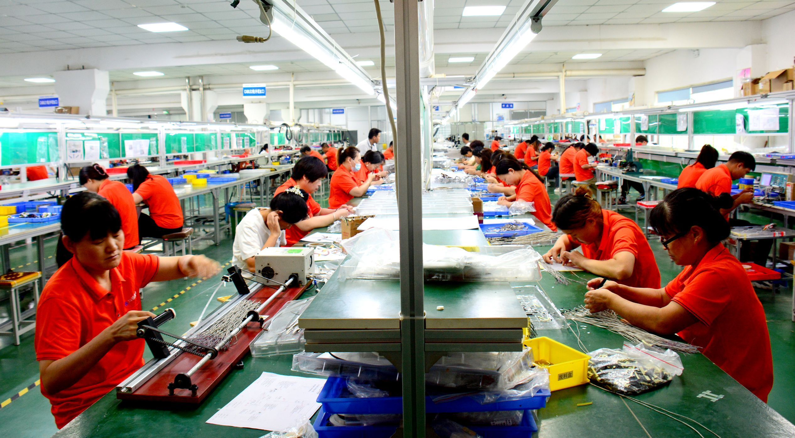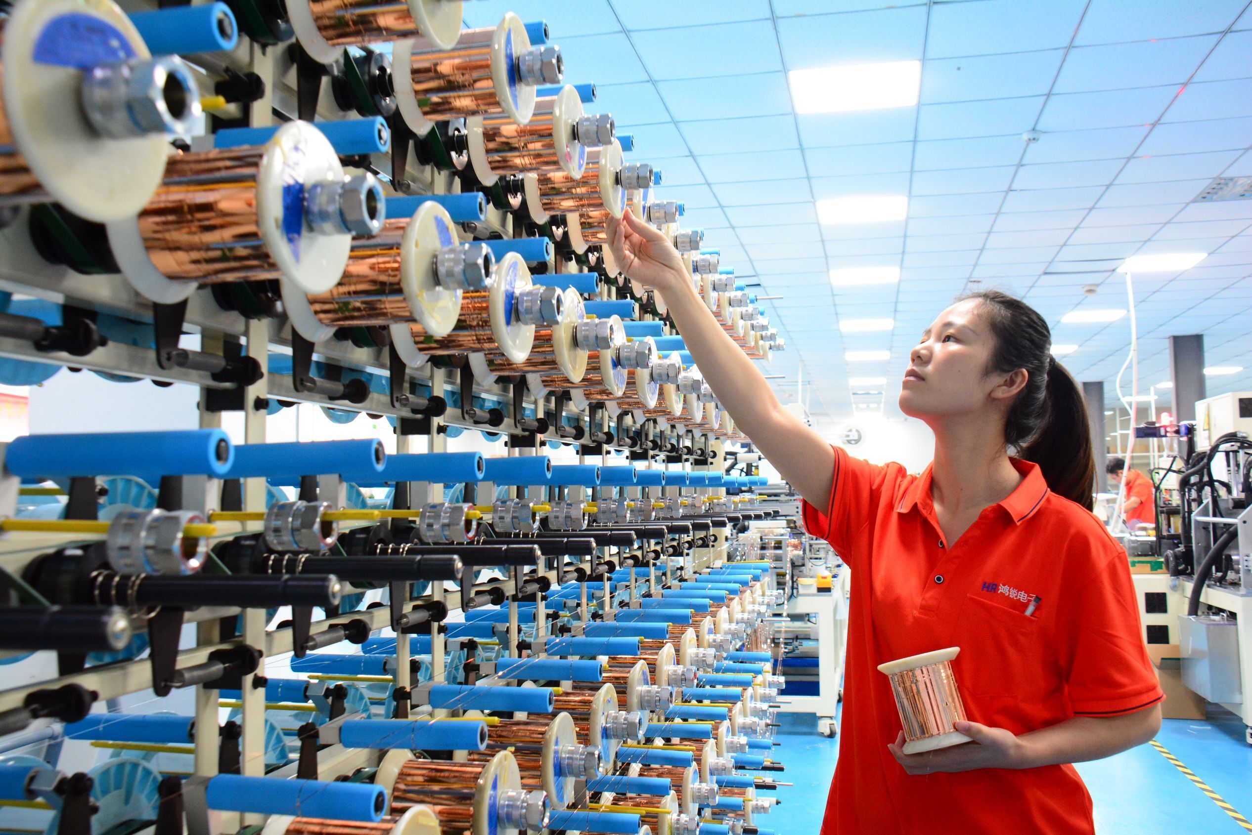 8月23日,临沂市郯城县郯城鸿锐公司生产车间,工人正在赶制电子产品出口订单,该企业生产电脑、无人机、医疗、汽车等产品连接器、高清大数据传输链接线束、光电等产品。(大众日报客户端记者 卢鹏 通讯员 张乐民 报道)