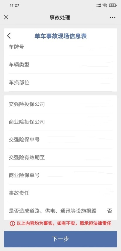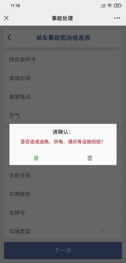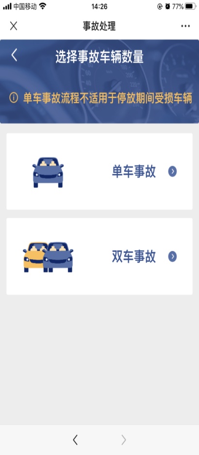 选择单车事故或两车事故(目前还不支持两车以上事故处理)。