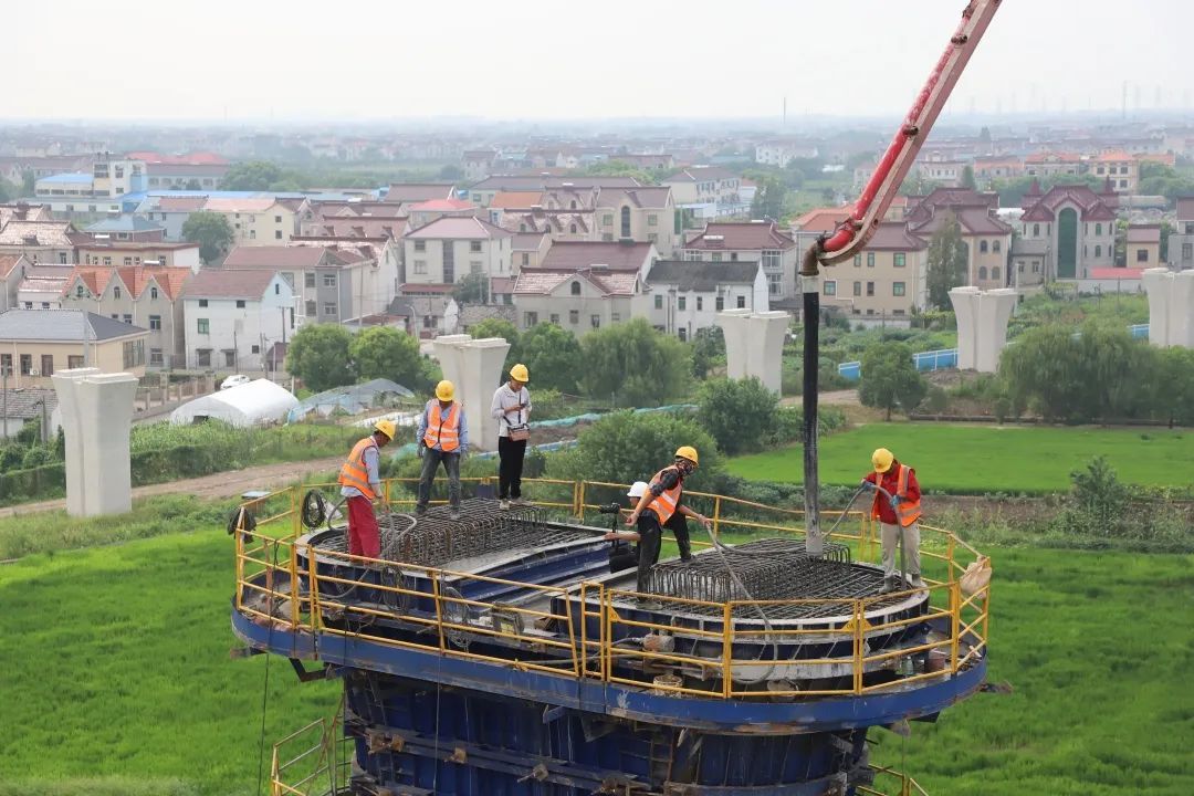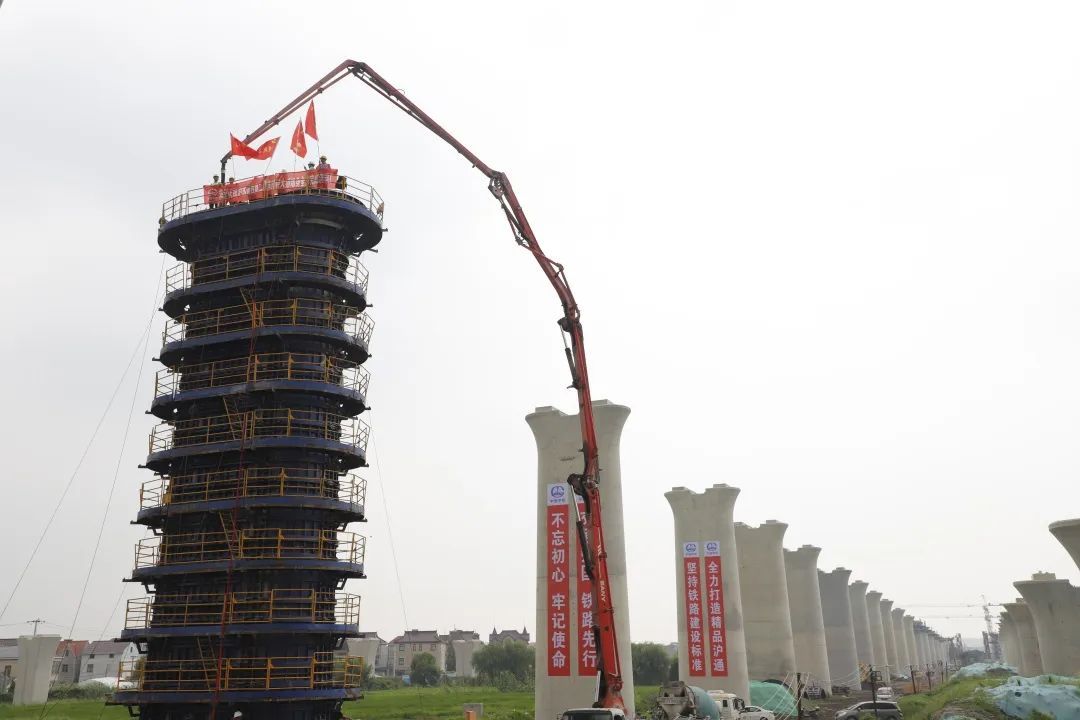 8月23日10时20分,在上海市浦东新区祝桥镇红三村动车双线特大桥施工现场,随着最后一方混凝土灌入2号墩模板内,标志着由中铁四局施工的沪苏通铁路二期(太仓至四团段)动车双线特大桥32个墩身全部完成浇筑。详见↓