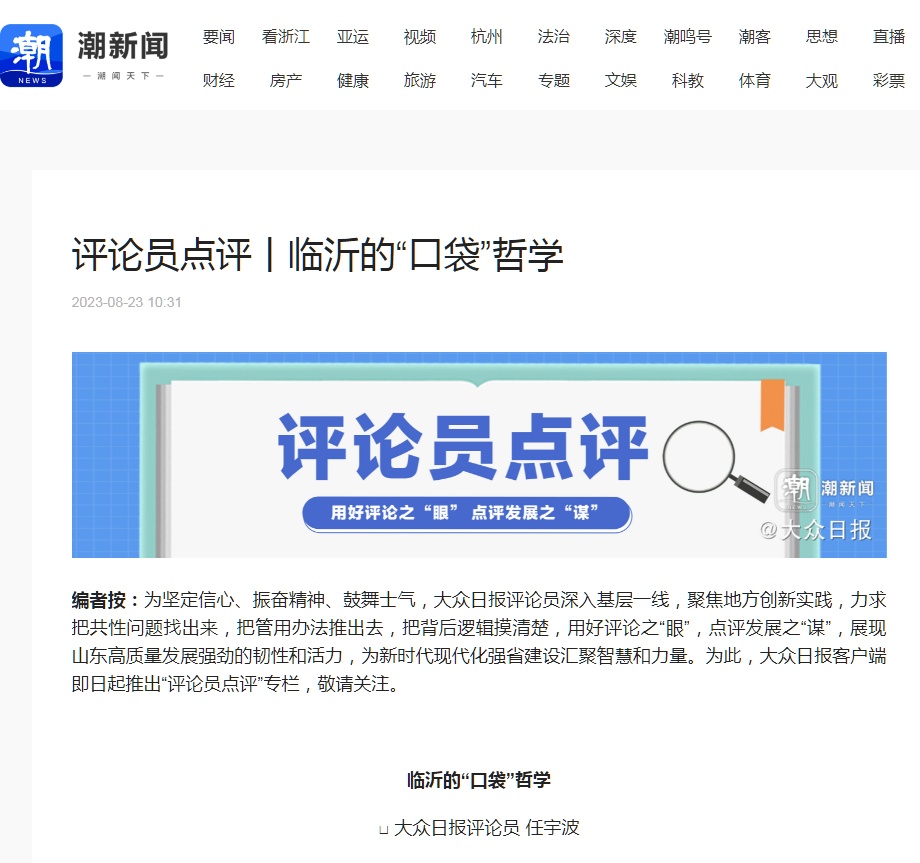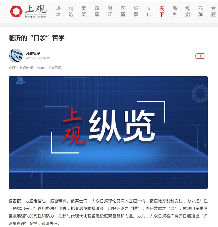 栏目首期聚焦临沂,推出《临沂的“口袋”哲学》。