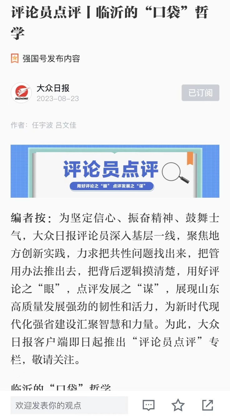 有党员干部发来信息,认为文章有述有评,再盼佳作。