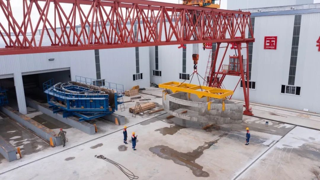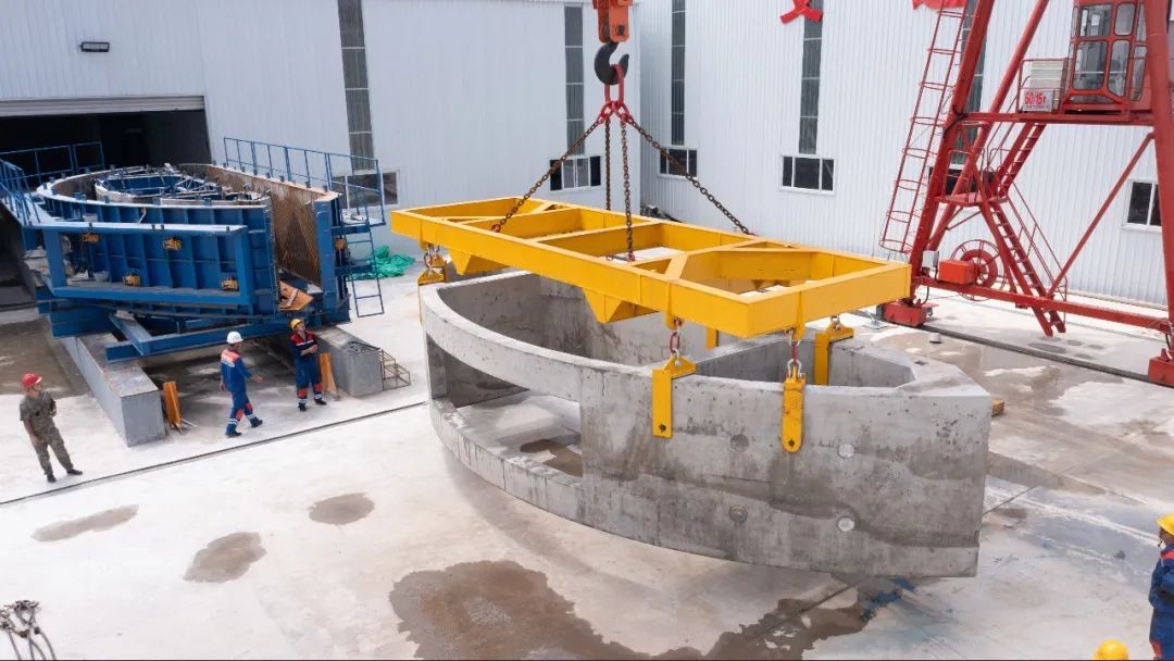 随着桥式起重机缓缓将刚刚脱模的箱涵吊起,崇太长江隧道的首块箱涵便诞生了。箱涵形似一个小半圆,高3.36米,顶面长10.9米,弧长12.8米。施工人员完成箱涵的混凝土浇筑,而后进行蒸养、静停降温等流程,首块箱涵就预制成功了。工作人员随后对箱涵进行了首件验收,首块箱涵的成功试生产,为后续箱涵量产奠定了坚实的基础,同时也将提升整个工程的施工进度。在这里,箱涵生产过程处处显示出自动化、数智化。加工生产区域通过几个人的操作就可以完成全部生产流程。箱涵钢筋加工区引入国内先进的数控钢筋剪切生产线、立式钢筋弯曲中心、钢筋弯箍机等自动化加工设备,可实现自动上料、定尺剪切、自动传输等功能。而箱涵生产流水线采用“独立窑”设计,设置蒸养窑6座,工位12个;采用PLC(一种具有微处理器的数字电子设备)控制,配合子母台车系统,实现了箱涵自动化流转、自动化蒸养。这条流水线配有箱涵模具7套,日产箱涵14块。盾构机每向前掘进2米,就需要安装10块环管片,箱涵则铺设在隧道底部管片之上,6601块箱涵最终将隧道拼接成一个平面,高铁轨道就将铺设在这个平面上。崇太长江隧道的重要构件管片和箱涵均为预制件,隧道现场进行施工的同时,这些预制件也正在加紧实现量产,以此来保障工期。中铁隧道局承建的崇太长江隧道全长14.25千米,为单洞双线设计,是沪渝蓉全线唯一一座10千米以上隧道。隧道采用直径15.4米的盾构机掘进,从上海崇明始发,独头穿越长江11.325千米后到达江苏太仓,独头掘进距离全球最长。隧道建成后,将直接打通长江北岸沿江城市与南京都市圈、上海都市圈的快速直达通道,加快长三角地区跨江融合进程,实现江海贯通,打造出“江出海、海进江”双向开放新枢纽。记者:蒋晓燕;摄影:黄天奇、张志豪