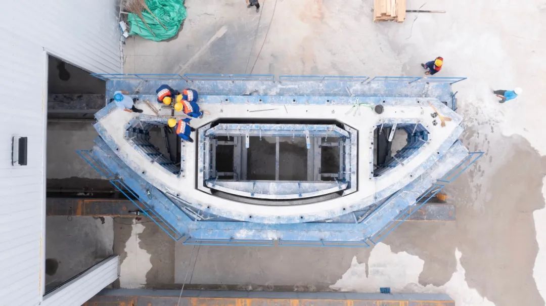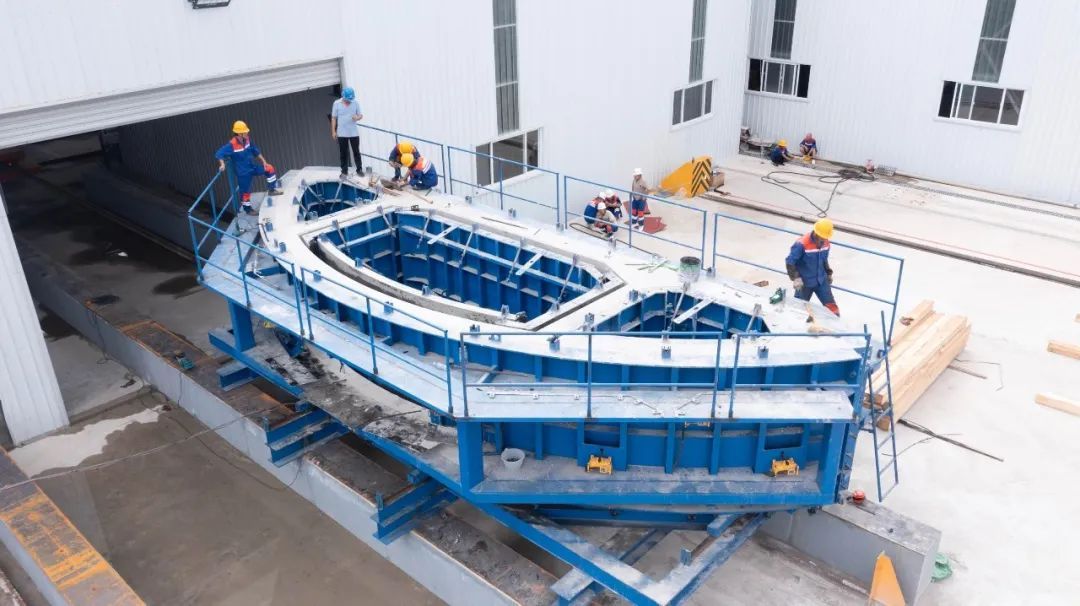 在沪渝蓉高铁崇太长江隧道建设中,随着盾构机向前掘,管片会将隧道拼成环圈状,这时需要在底部铺设一块块内弧形的箱涵,这些箱涵最终将拼接成一个平面,未来,高铁轨道就铺设在上面。昨天(8月23日),崇太长江隧道的首块箱涵成功生产并通过验收。