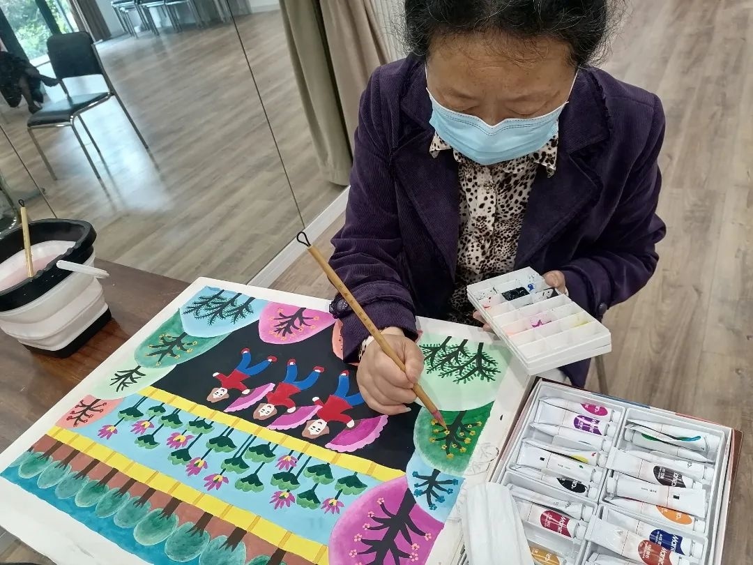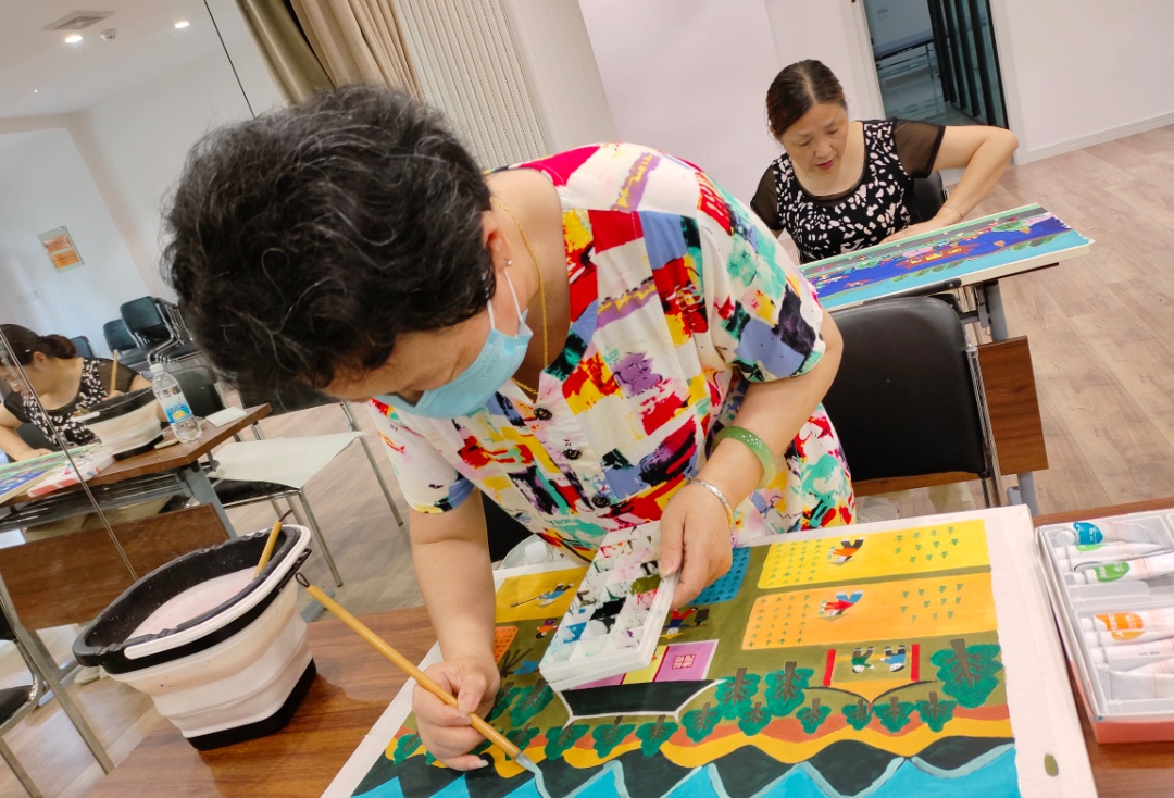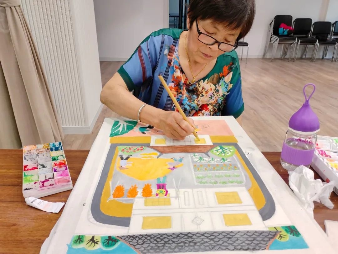 学员们在绘画中享受文化生活,在生活中发掘真善美。学员王士雄说:“我就像刚学会走路的小孩,每走一步都得到了老师的帮扶、学友们的鼓励。”学员阮粉连说:“这么好的学习平台,不仅丰富了我们的生活,也让我们进一步了解金山农民画,更让我们学会了用画画来表达自己。”
