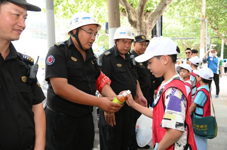 现场,小报童们化身公益推广使者,用卖报的形式参与公益捐款,用实际行动为烈日下工作的叔叔阿姨献出自己的一份爱心。