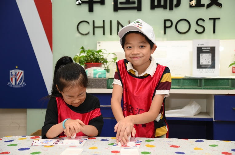 随后,小朋友们还集体前往上海体育场邮政支局申花主题邮局进行参观,工作人员带领小朋友们进行了“手绘尤克里里”,并在申花主题明信片上盖章留念。